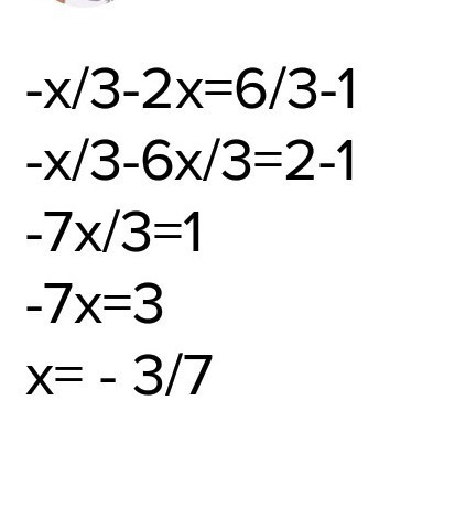 1-x/3=2x+6/3=1-x=2x-6=-x-2x=-3x=5=-5/3