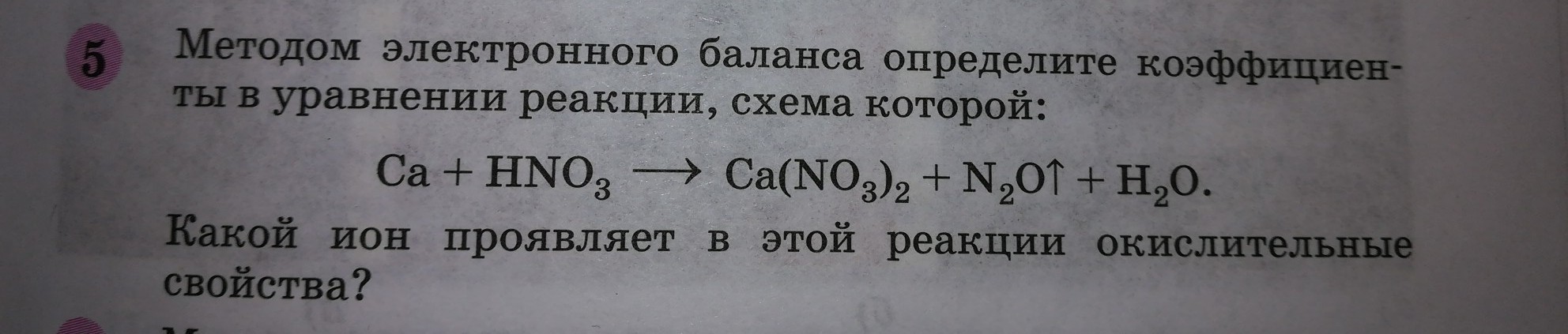 4Ca⁰ + 10H⁺¹N⁺⁵O₃⁻² => 4Ca⁺²(N⁺⁵O₃⁻²)₂ + N₂⁺¹O⁻²↑ + 5H₂⁺¹O⁻²