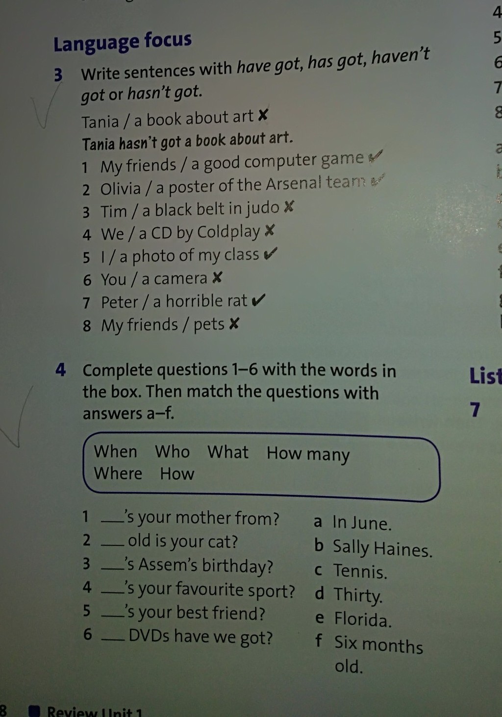Where, how, when, what, who, how many, 1e, 2f, 3a, 4c, 5b, 6d