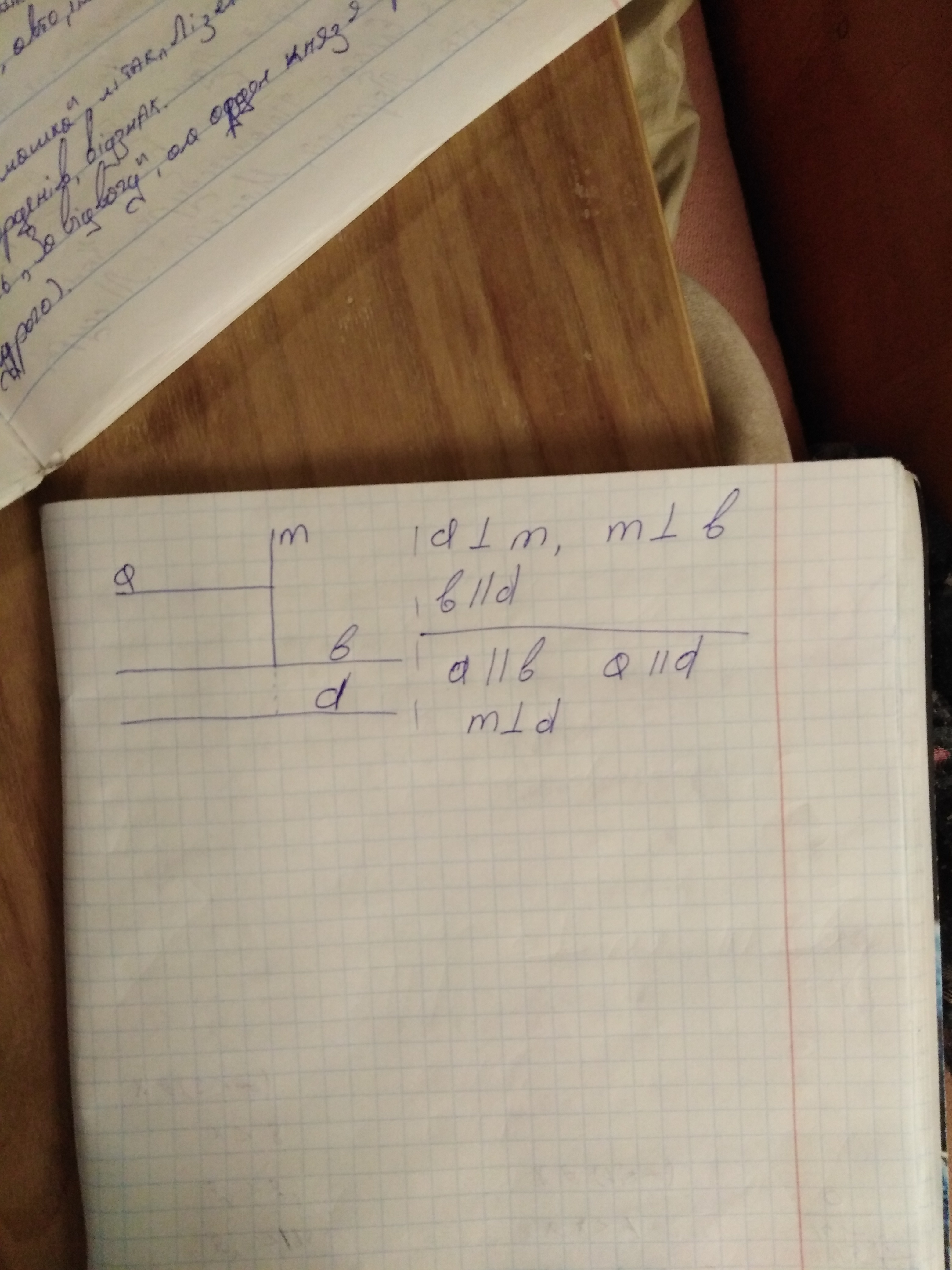 Вроде так. Так как m_|_ b, то m_|_d. И так как a _|_m, то а||d и а||b
