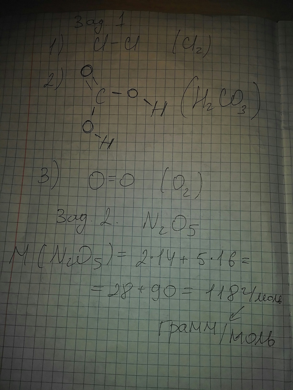 Задание №1. Запишите формулы веществ и атомов: А) 3 атома хлора Б) 3 молекулы угольной кислоты ( угольная кислота состоит из двух атомов водорода , одного атома углерода и трёх атомов кислорода) В) двухатомная молекула кислорода