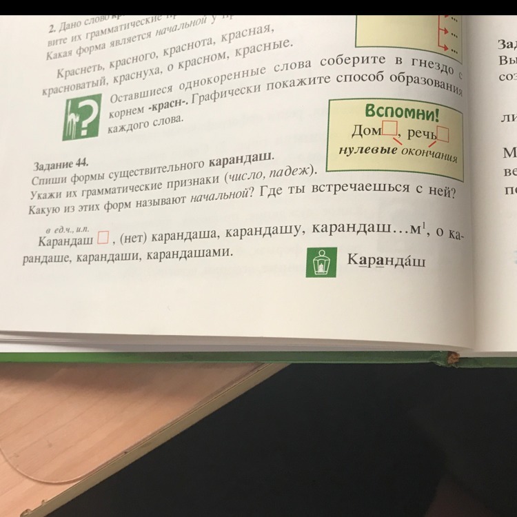 Карандаш-мужской род, единственное число, именительный падеж, это и есть начальная форма. С начальной форме ты встречаешься в предложениях или ы повседневной жизни