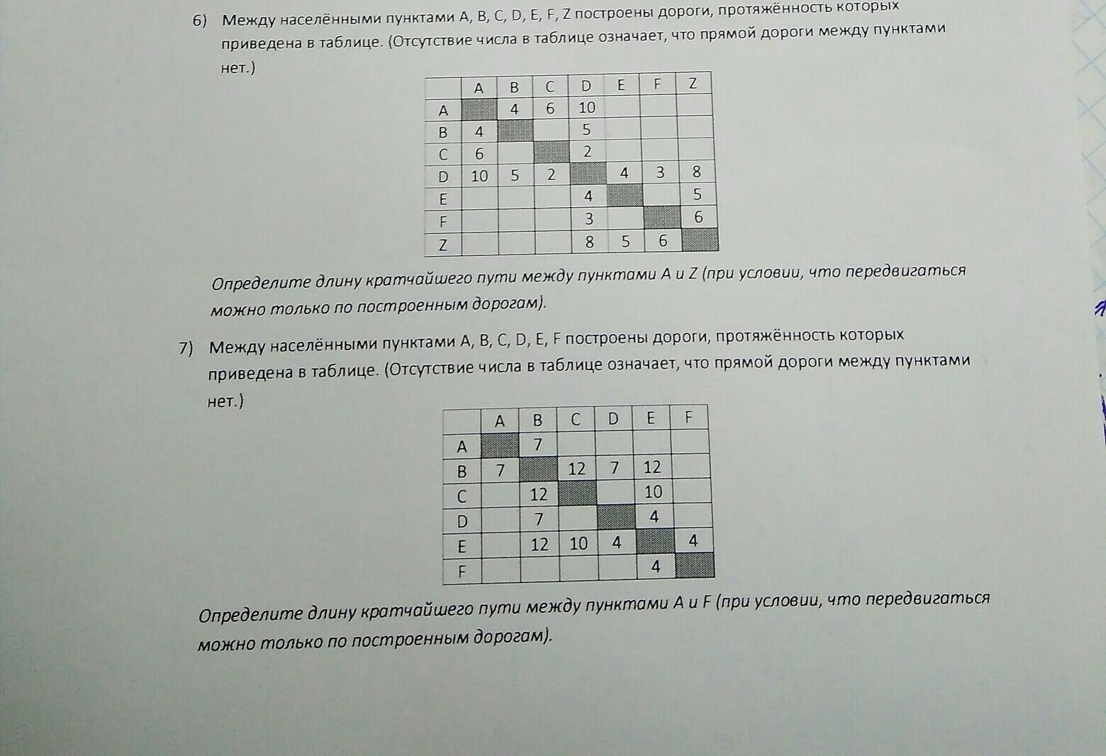 на фото я построил граф аналогично таблице и нашол кратчайший путь)