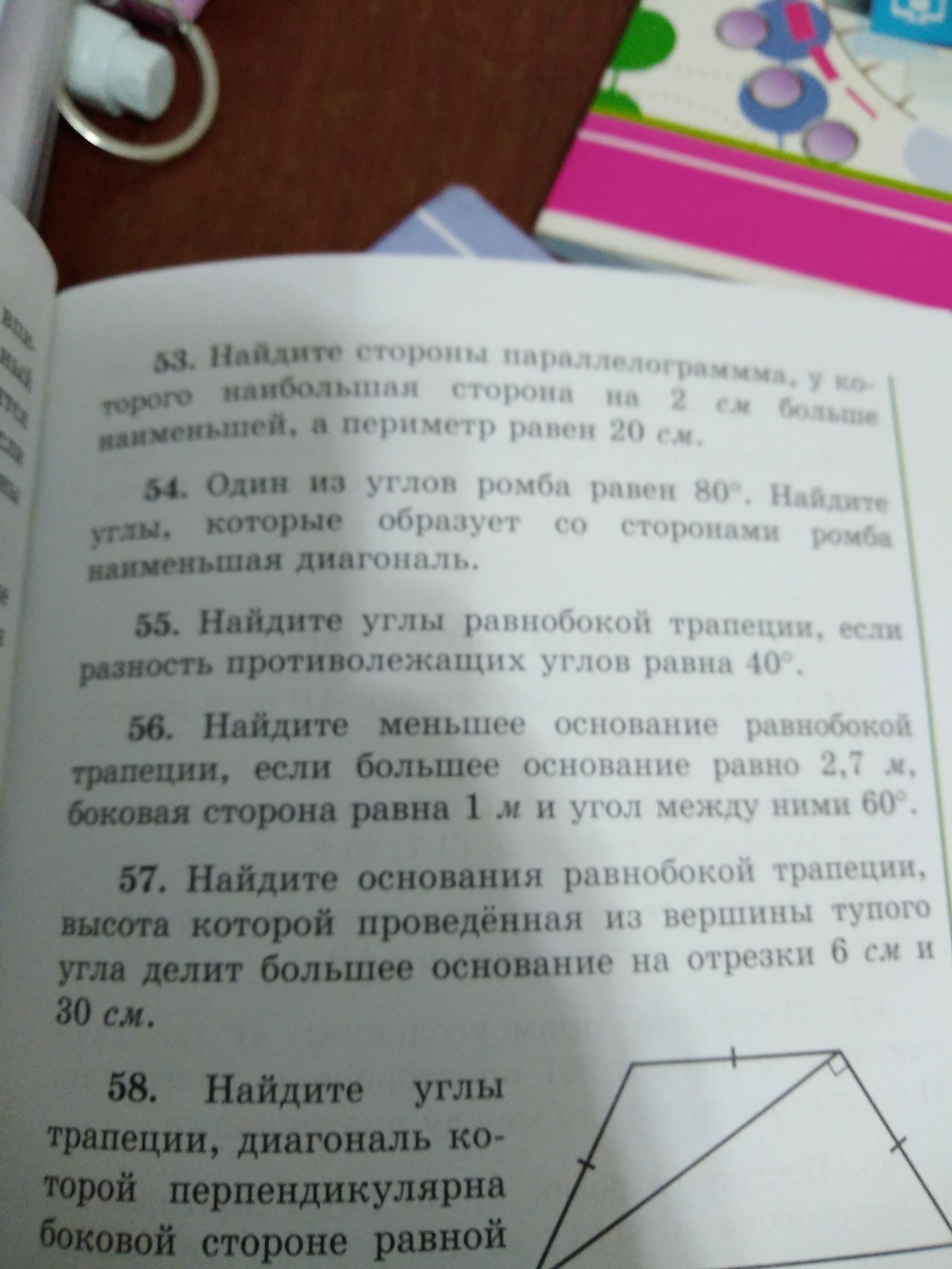 Провелем перпендикуляры из меньшего основания к большему, получаются отрезки BH и CE