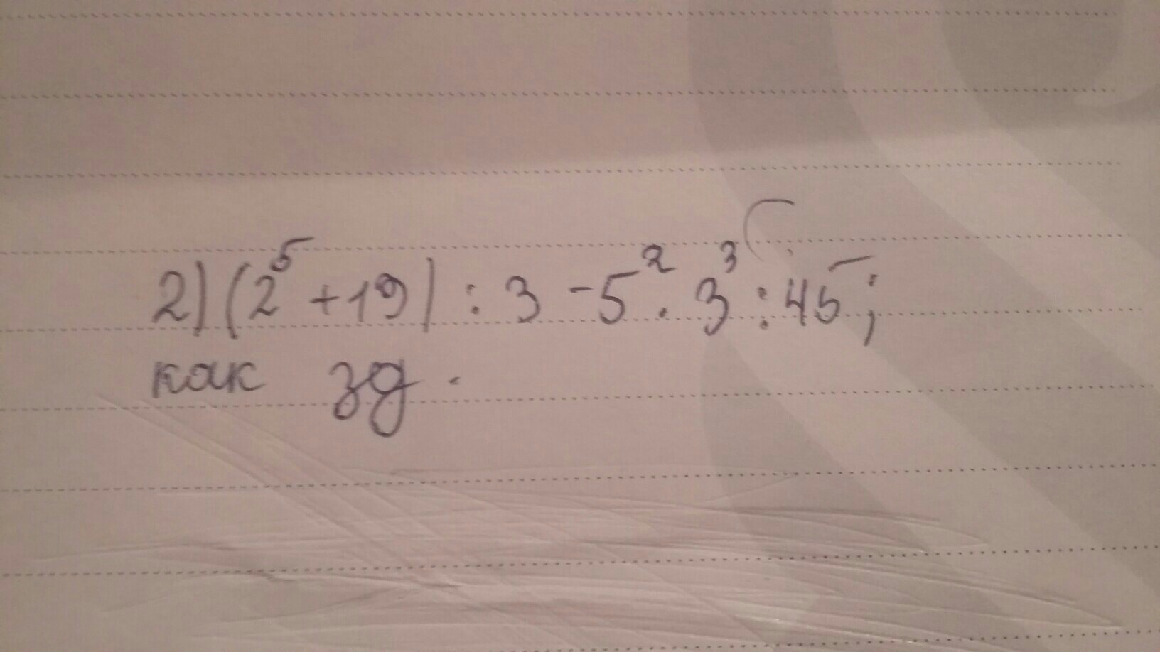 (2*2*2*2*2+19):3-(5*5)*(3*3*3):45=17-15=2