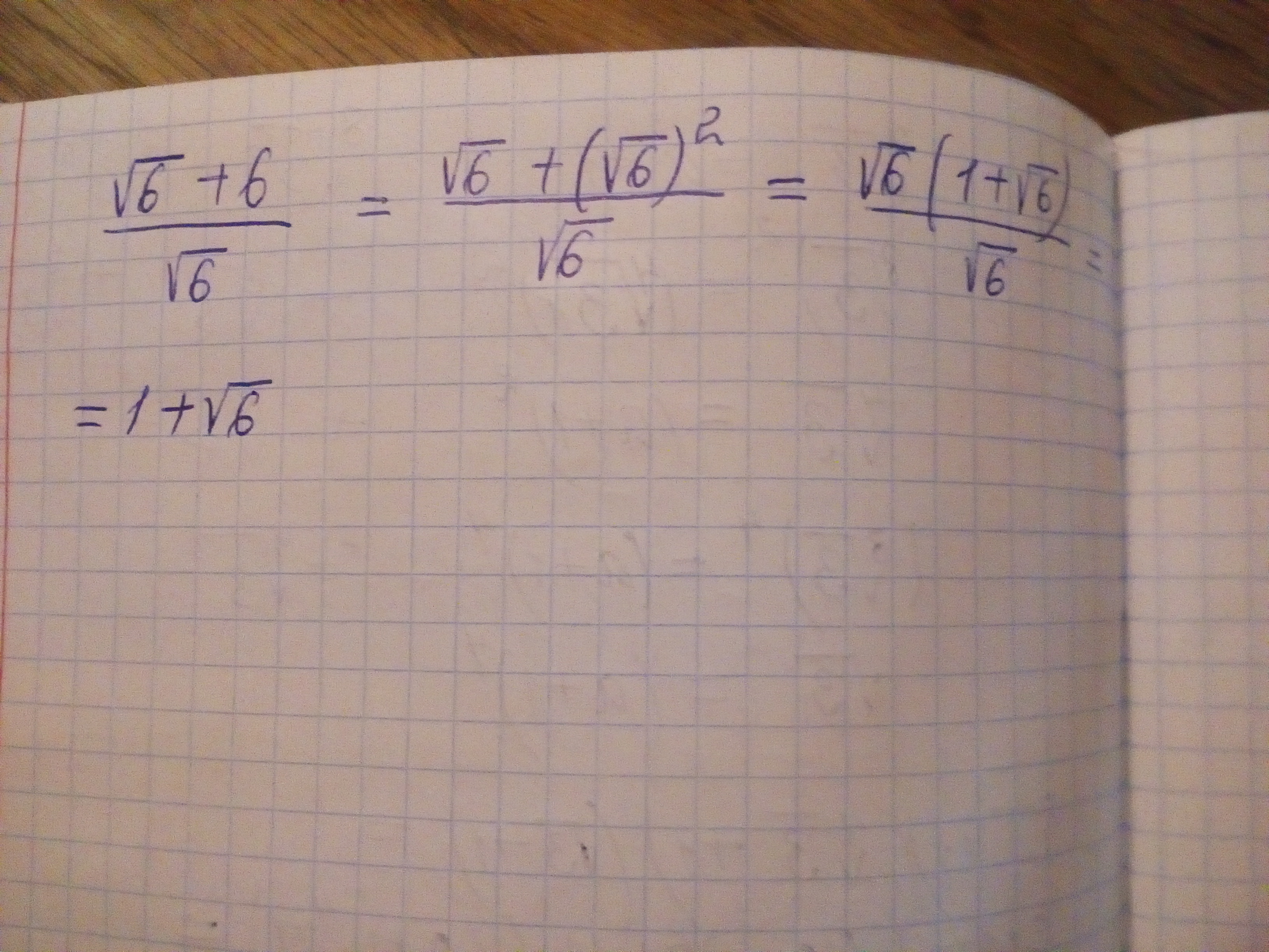 Мы сократили √6 в числителе и знаменателе, осталось только выражение 1 + √6 , которое у нас было в скобках