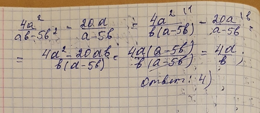Упростите выражение, пожалуйста! 8 класс (сложение и вычитание дробей с разными знаменателями). У меня получилось 16/a-5b, хочу проверить.