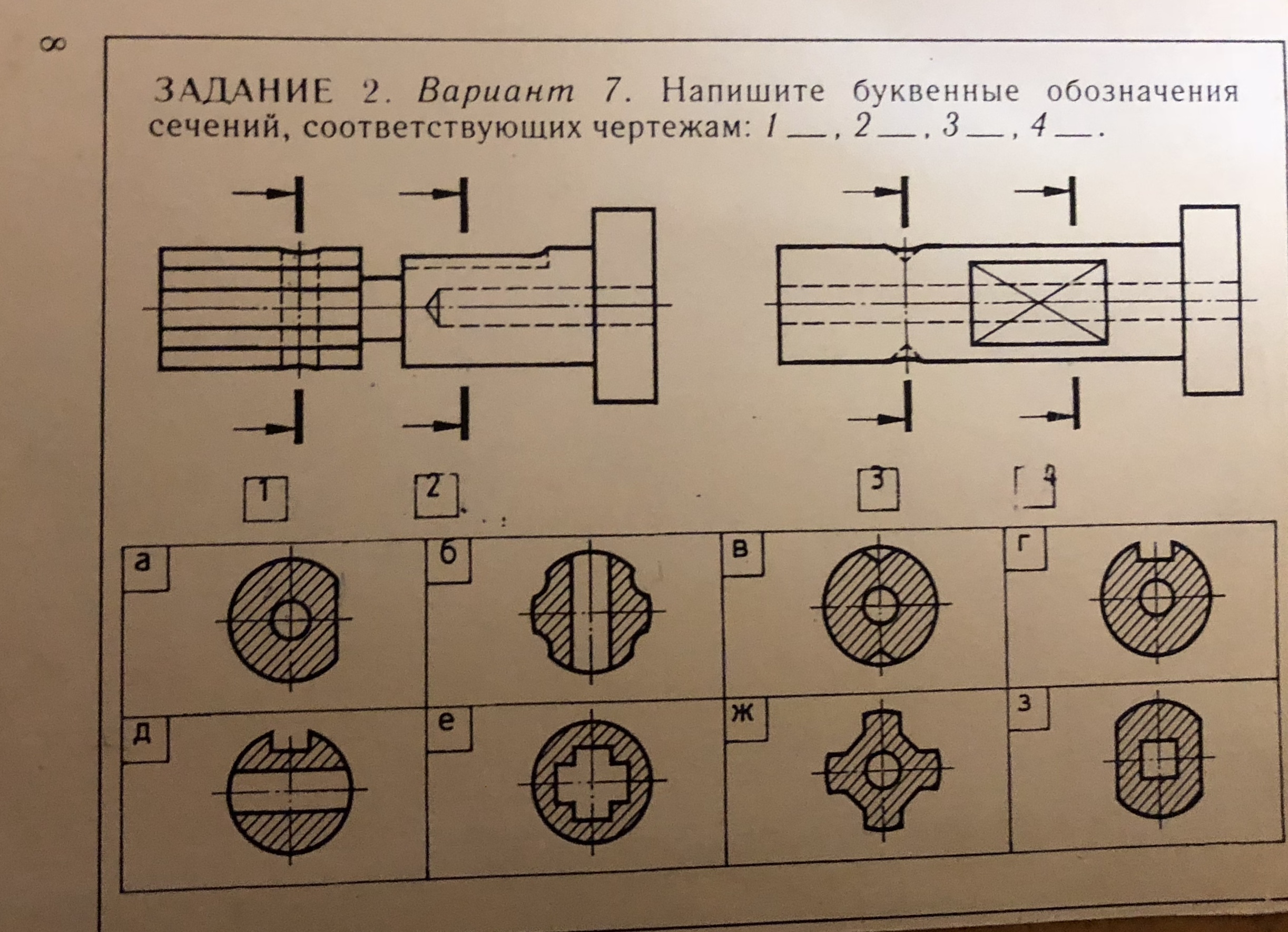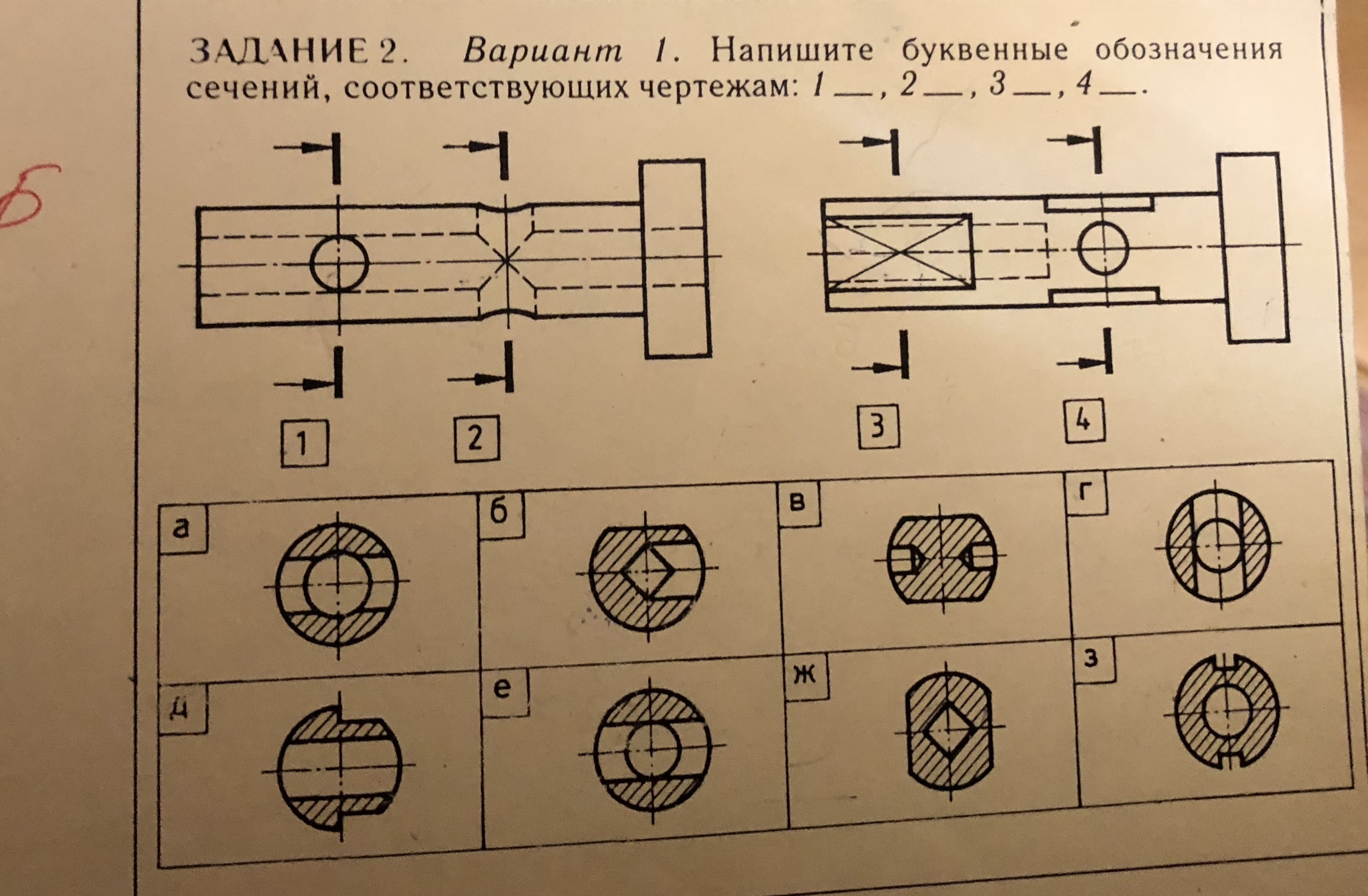 Напишите буквенные обозначения сечений , соответствующие чертежам ...