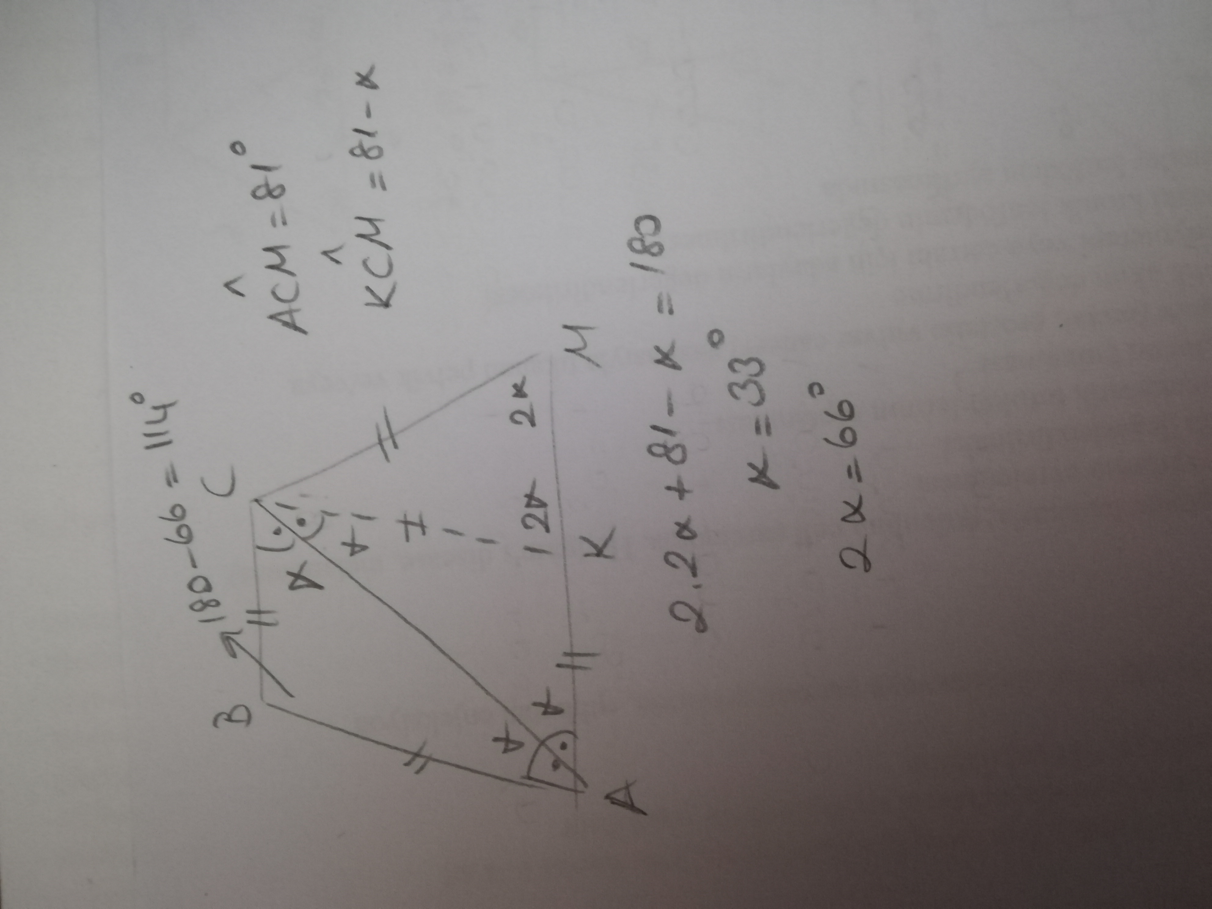 в равнобедренной трапеции ABCM (AM - большее основание) диагональ AC - биссектриса угла А. Найдите углы трапеции, если угол ACM) = 81°