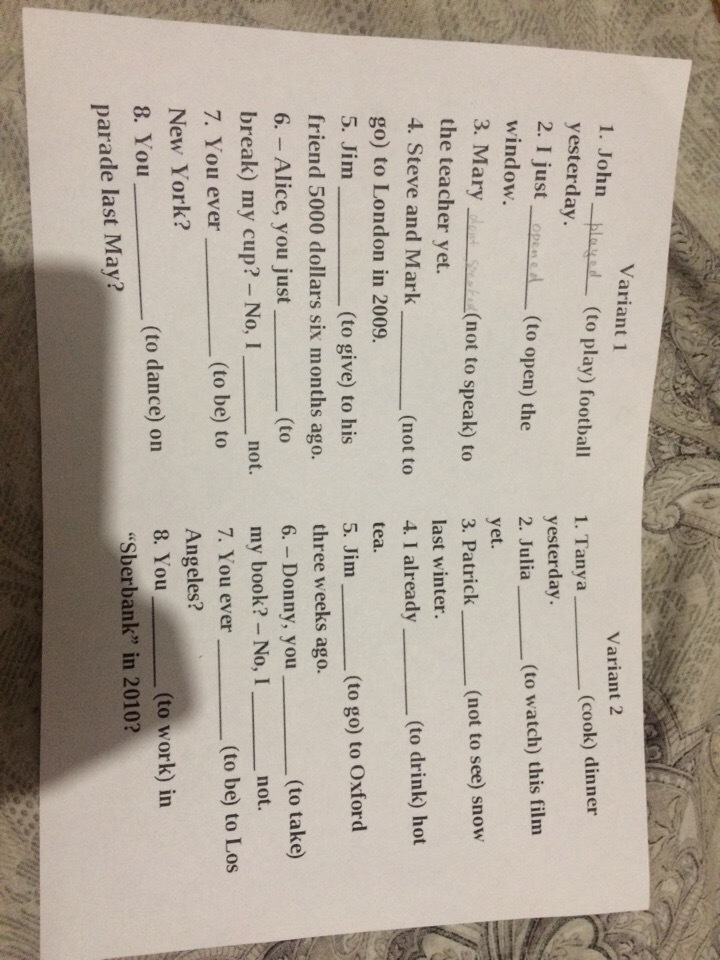 5. Went будет вместо didnt go. Когда делала, казалось нужно негативную форму сделать:) оказалось позитивную