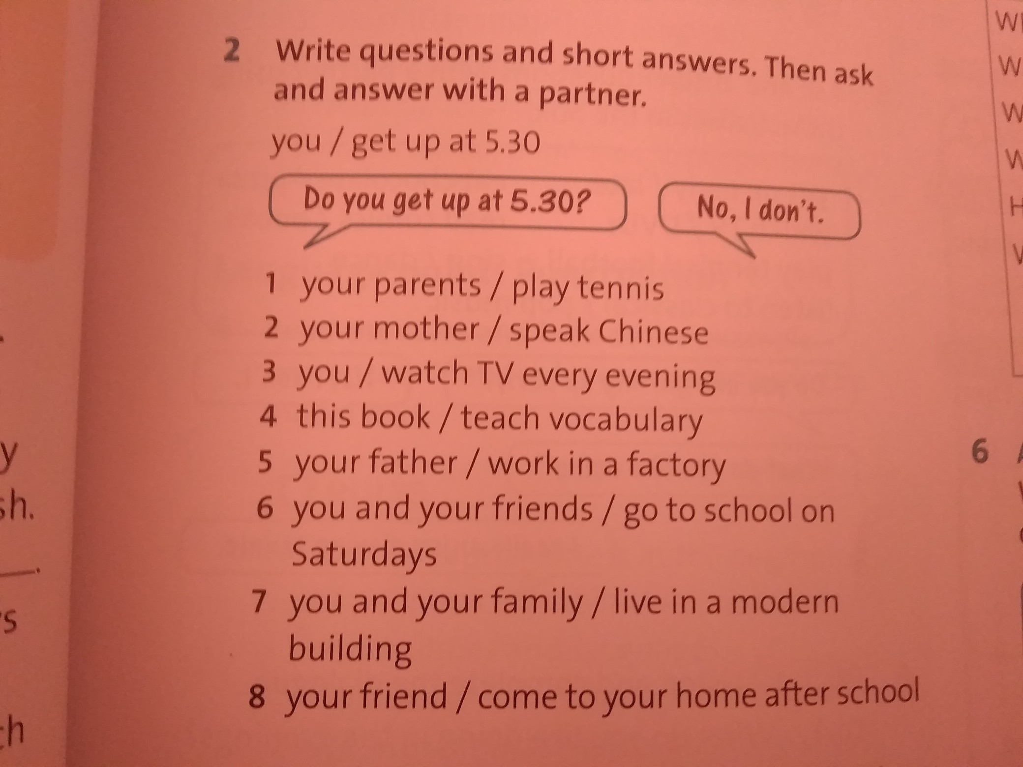 do you get up at 5 30 ?no I don't your parents play tennis .