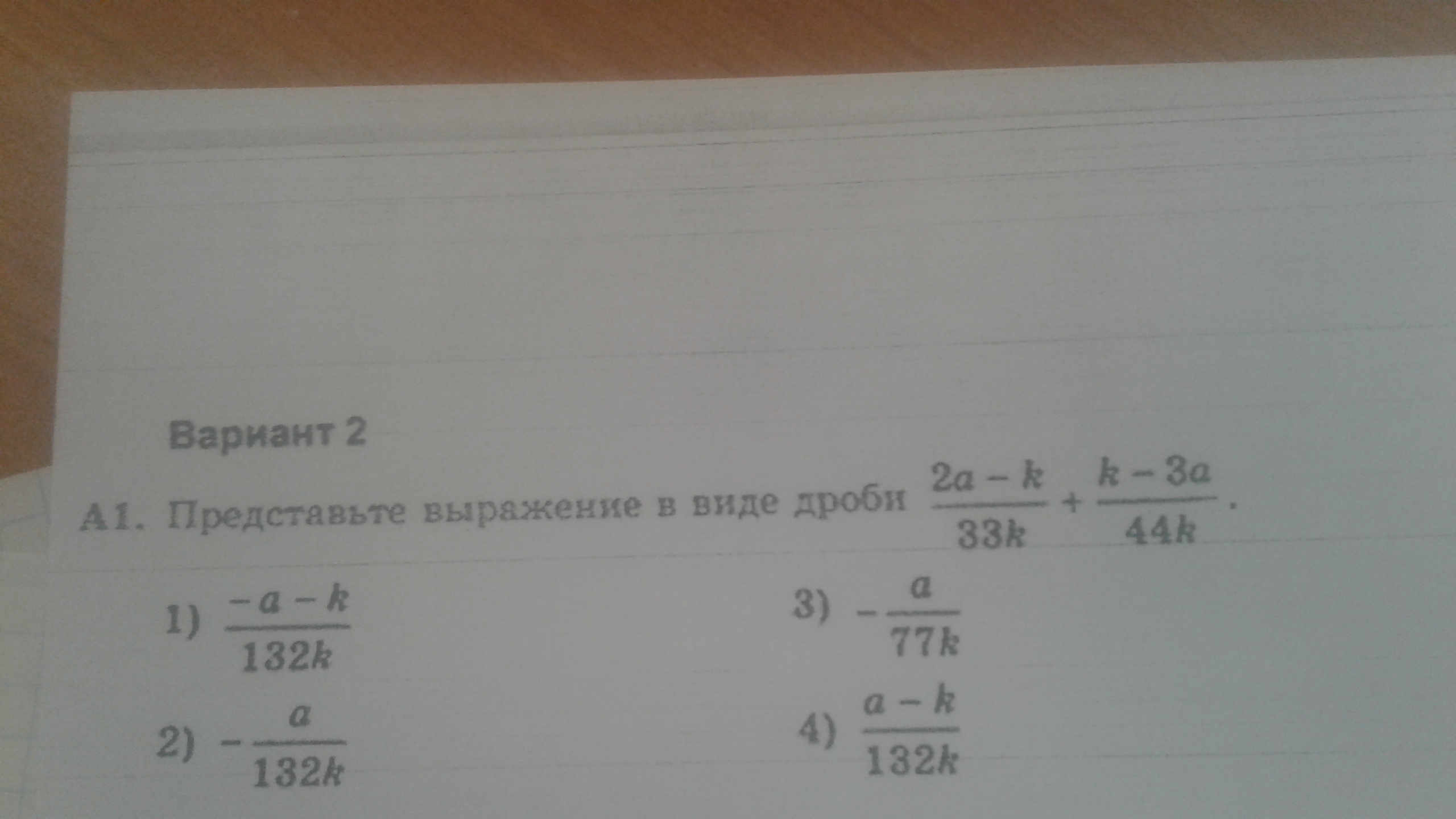 ((2a-k)/(33k)+((k-3a)/44k)=(4*(2a-k)+3*(k-3a))/132k=(8a-4k+3k-9a)/132k=(-a-k)/132k.