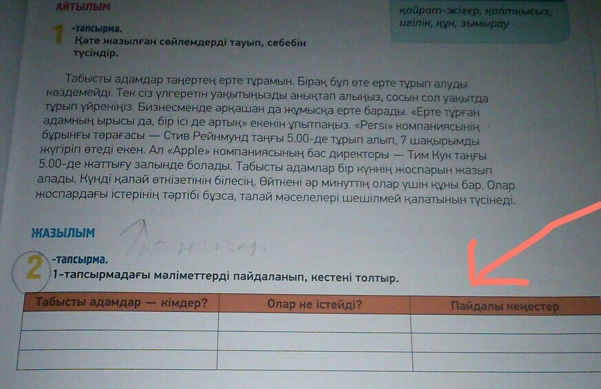 2-тапсырма 1-тапсырмадағы мәліметтерді пайдаланып,кестені толтыр.