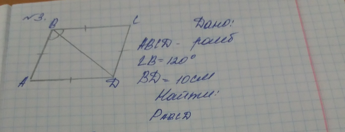 треугольники BCD=BDA-равносторонние(т.к. все углы 60 гр.)=>BC=CD-BD=10см
