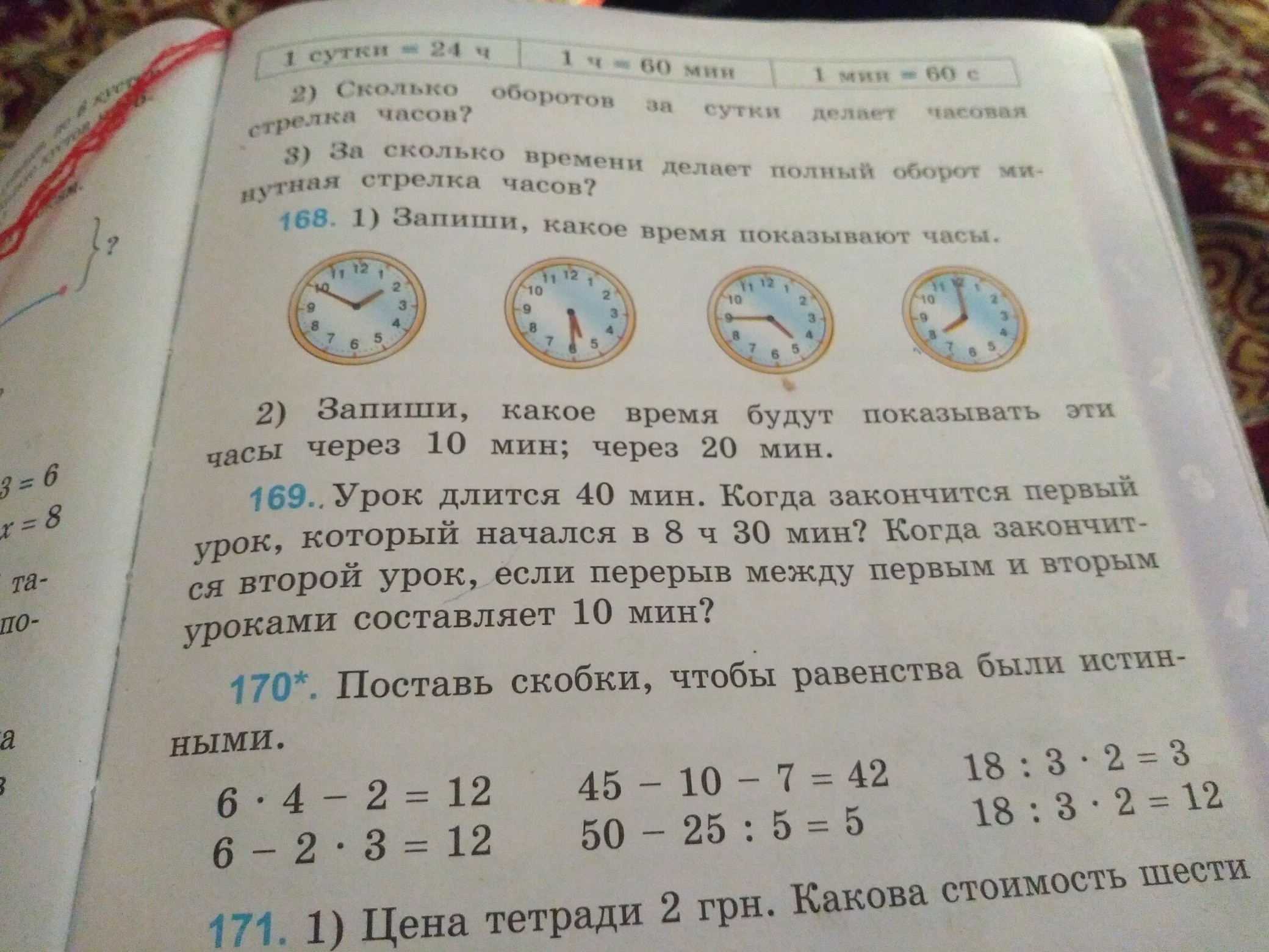 первый урок закончится в 9 часов 10 минут. второй урок закончится в 10 часов ровно