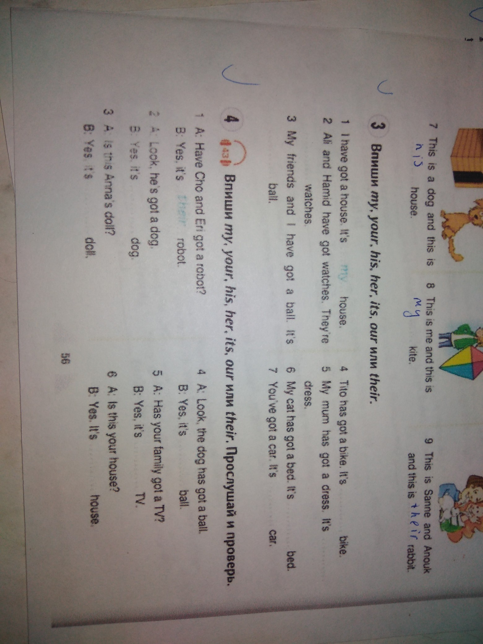 1 my;2 your;3 our;4 his;5 her;6 his;7 her