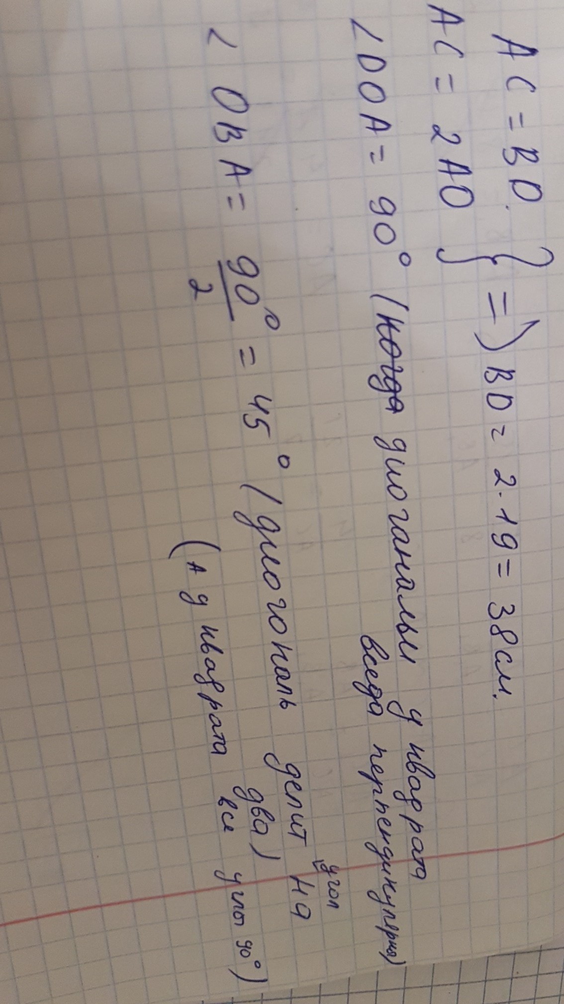 1)диогональи у квадрата всегда перпендикулярны (это значит что они 90°)