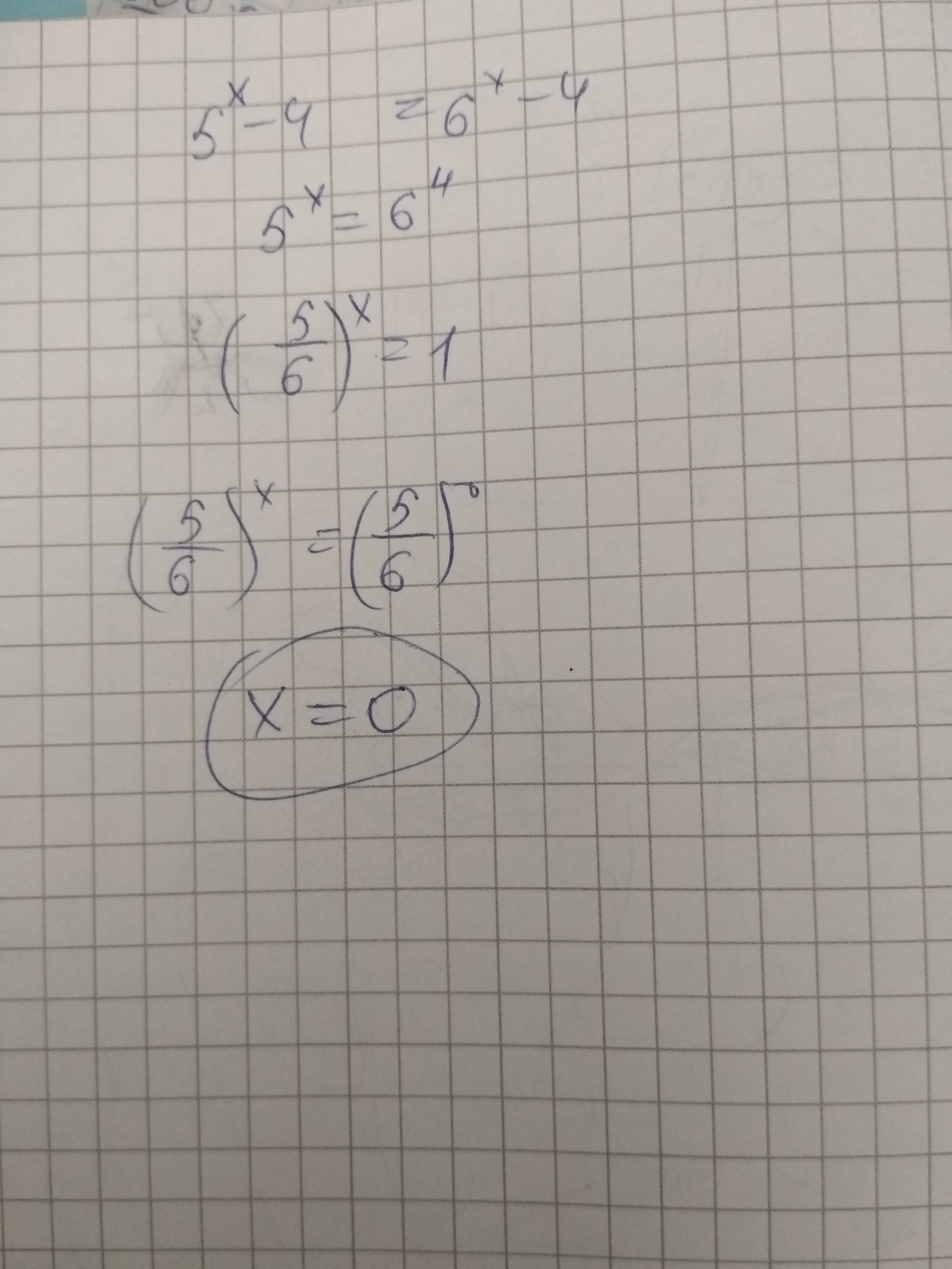 (5/6)^x-4=(5/6)^0