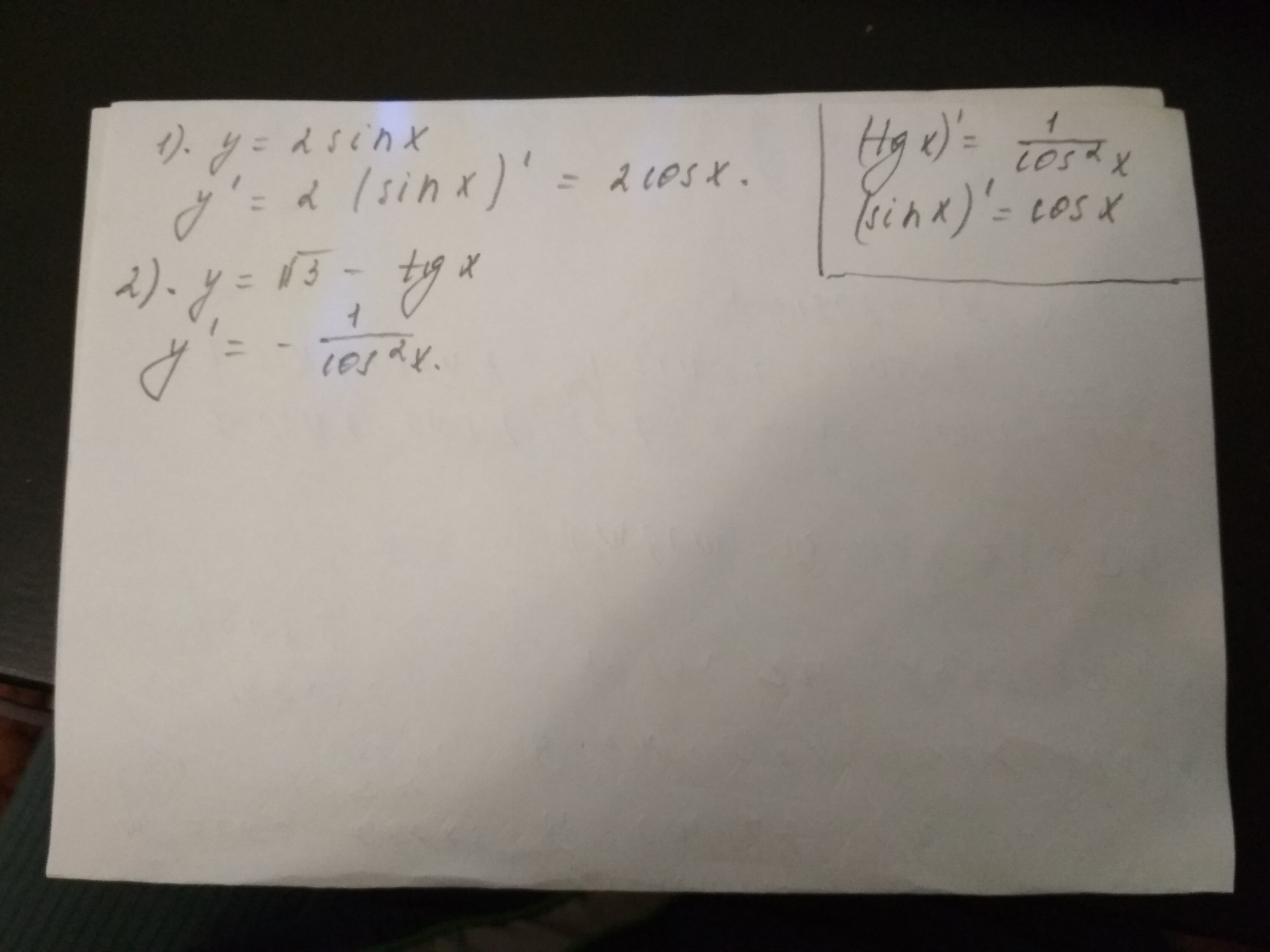решение на фото . формулы для нахождения производной тангенса и синуса - справа