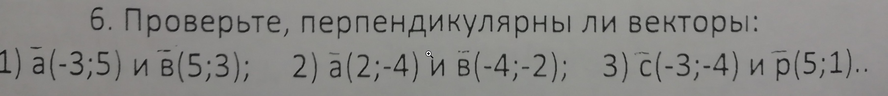 1)Векторы перпендикулярны их. скалярное произведение равно 0. действительно ab=(-3*5)+(5*3)=-15+15=0