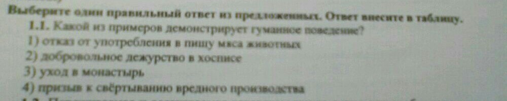 Примером гуманного поведения является добровольное дежурство в хосписе. Человек, не получающий за это никаких денег, ухаживает за безнадежно больными, и облегчает их страдания. Другие примеры не являются примерами гуманного поведения.