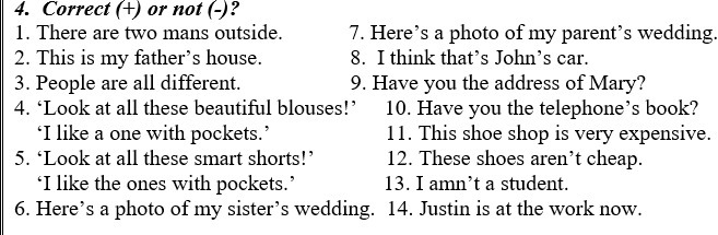 4. ‘Look at all these beautiful blouses!’ 10. Have you the telephone’s book?