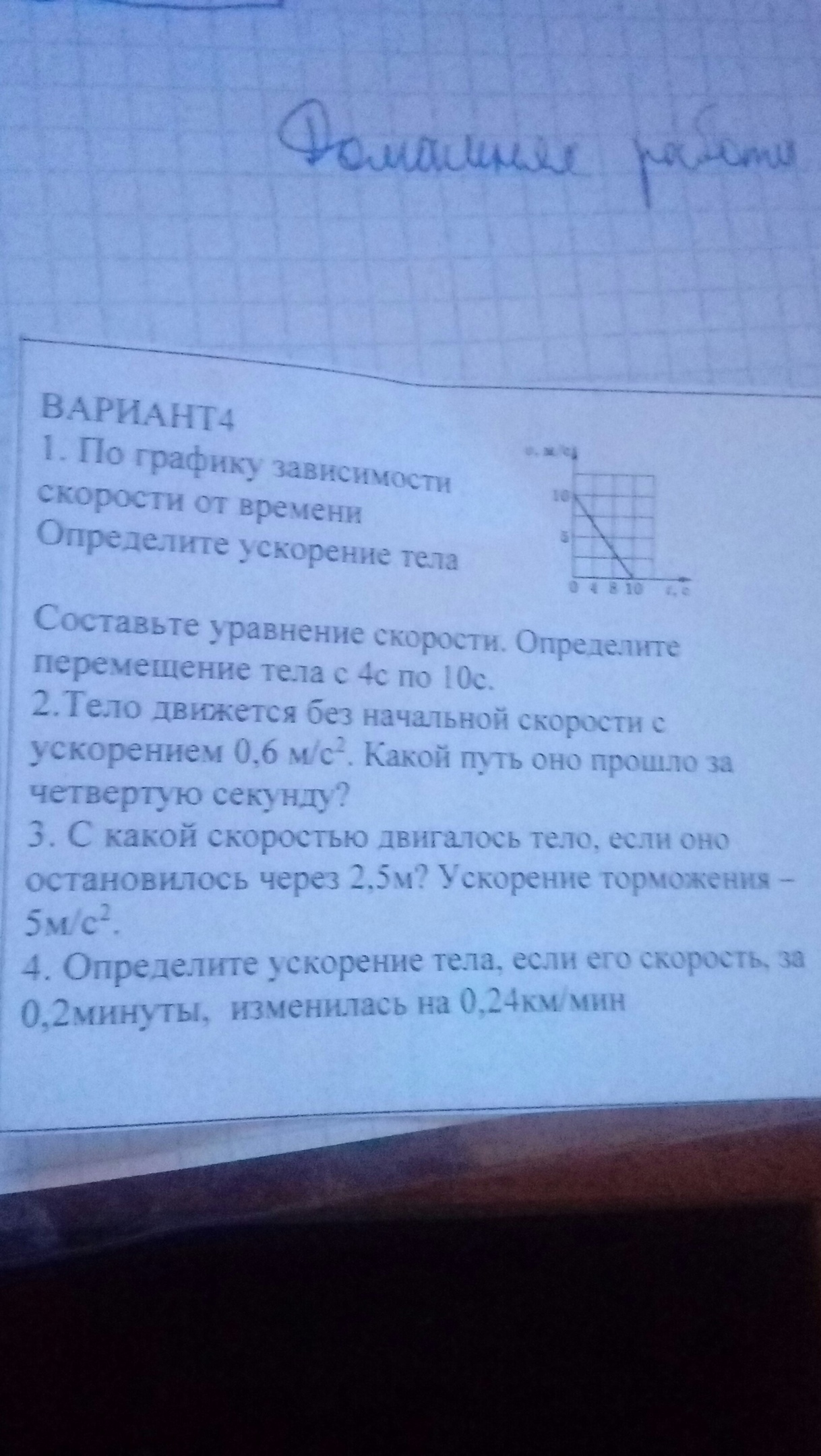 a = ∆V/∆t = 0.24/0.2 = 1.2 км/мин²