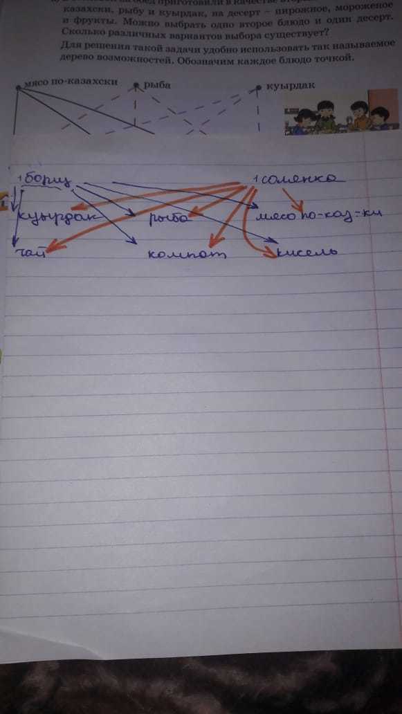 А если в этой столовой приготовили чай,компот и кисель,то как сделать выбор из трёх блюд?Построй дерево возможностей.