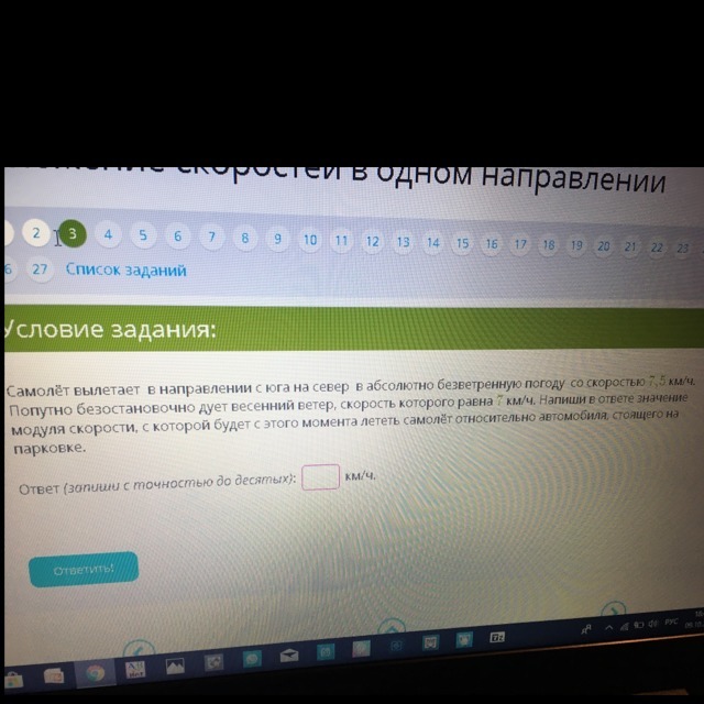 так как ветер попутный надо сложить скорости 7+7.5=14.5км/ч