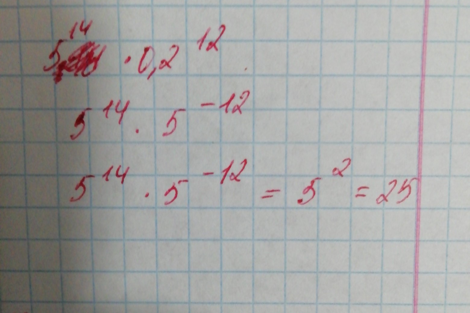 5 в 14 степени умножить на 0.2 в двенадцатой степени (подробное решение с натуральными степенями)