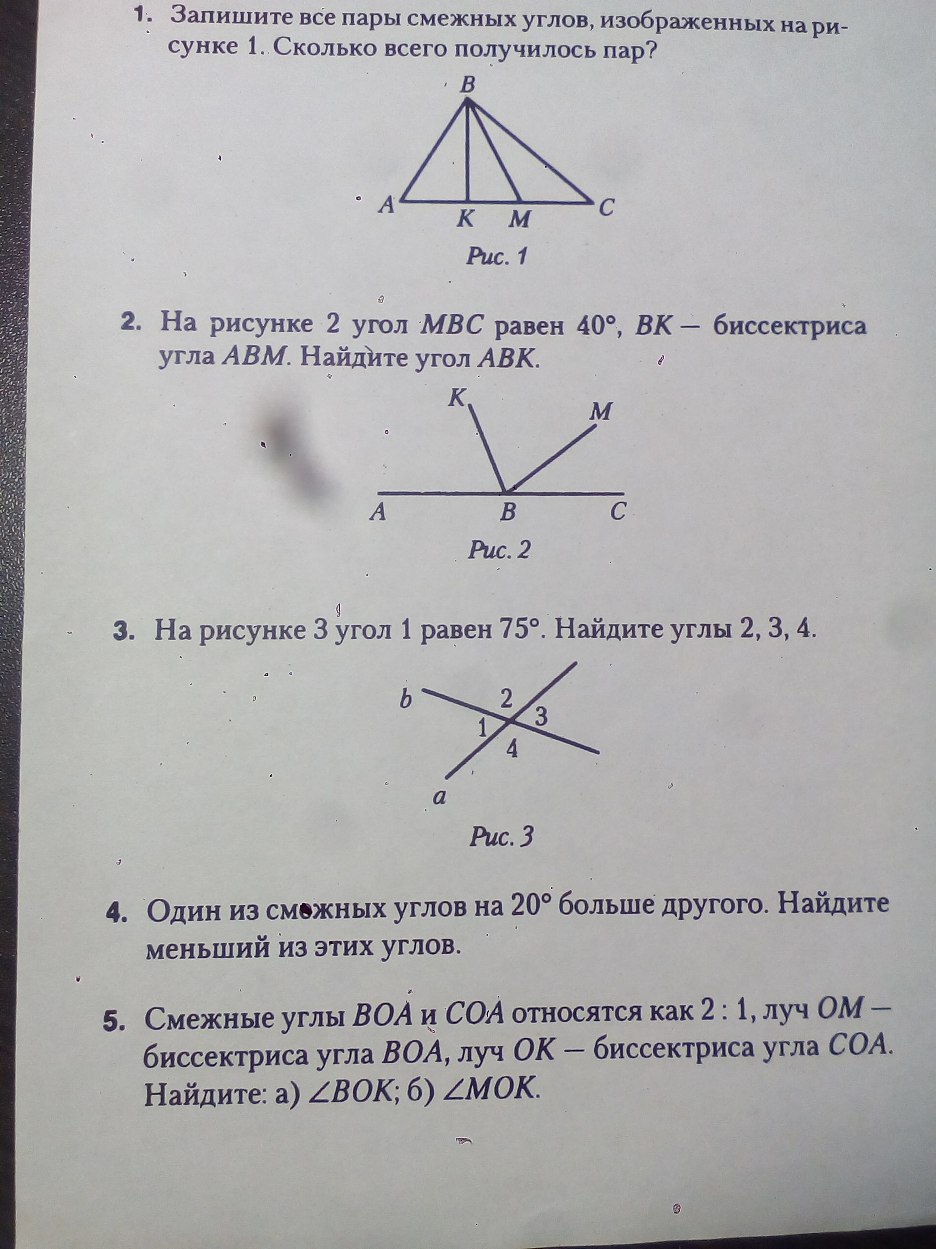 3. <1=<3, <2=<4 (вертикальные); <3=75; <2=180-75=105, <2=<4=105