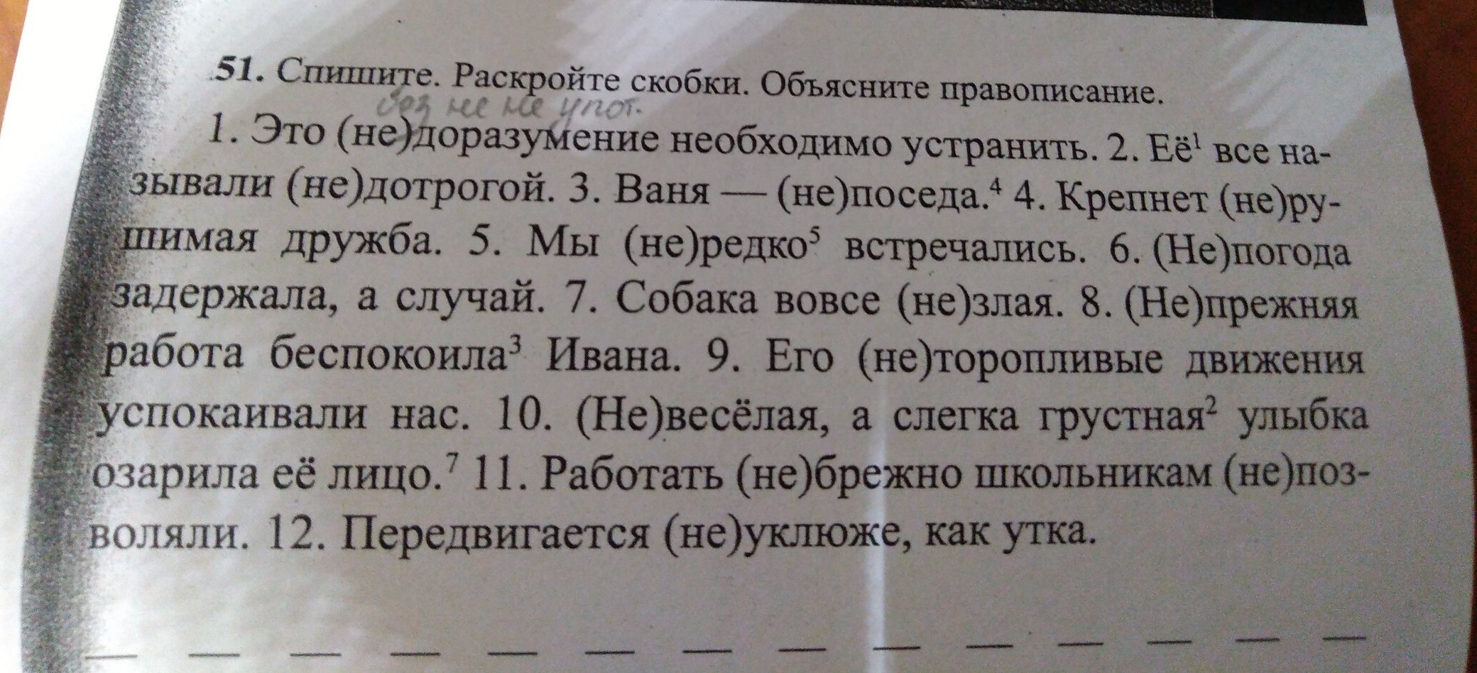 Недоразумение не- приставка, непоседа не- приставка, недотрогой не- приставка, нерушимая не- приставка, нередко не- приставка, непогода не- приставка, не злая не- союз, не прежняя не- союз, неторопливые не- приставка, невесёлая не- приставка, небрежно не- приставка, не позволяли не- союз, неуклюже не- приставка