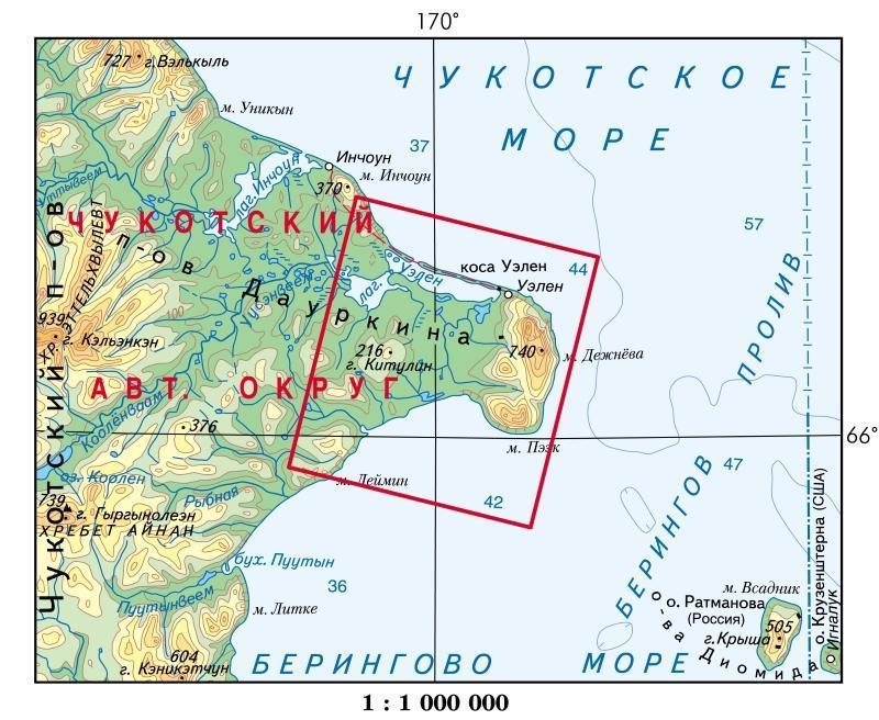 Рассмотрите карту Чукотского автономного округа. Ответьте на вопрос: