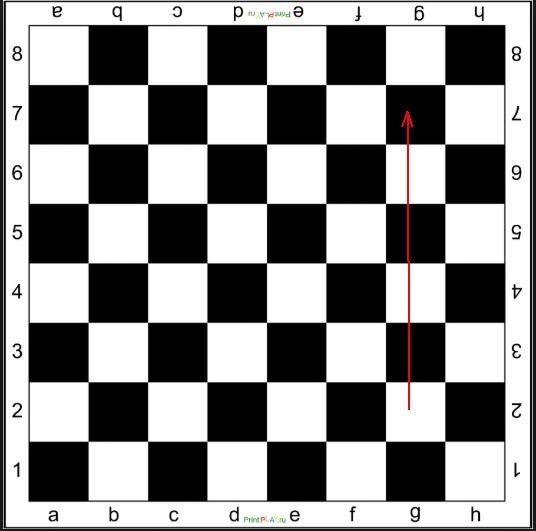 В классической расстановке фигур пешки стоят на второй горизонтали. Значит, путь пешки составит s0 = 8-2 = 6 клеток (предполагаем, что пешка начинает из центра клетки и заканчивает в центре клетки).