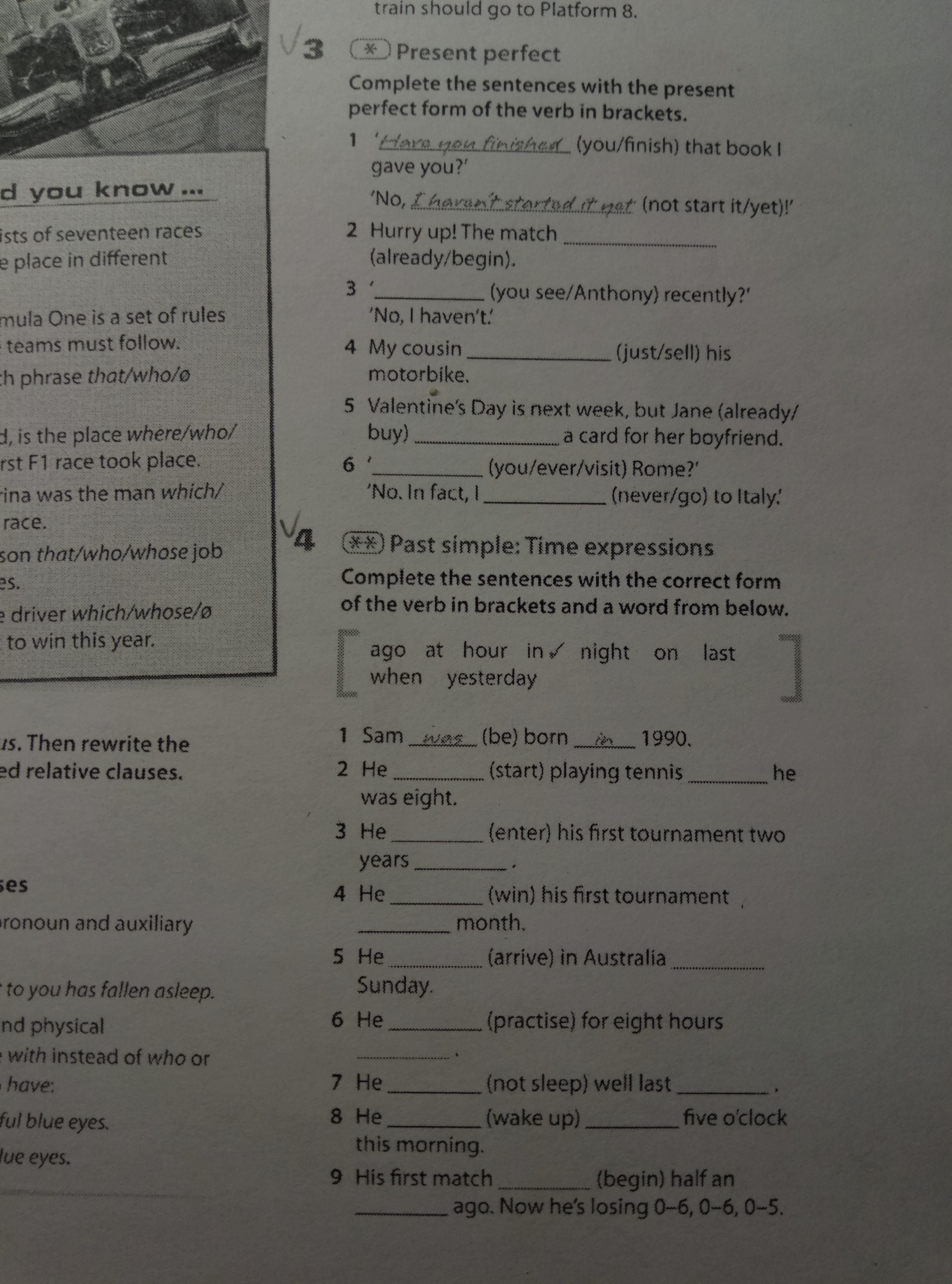 6. He practised for eight hours yesterday.