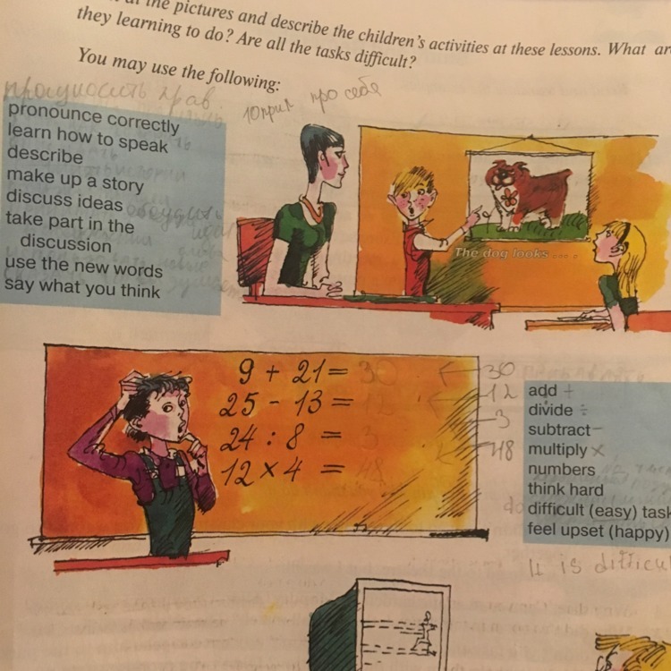Look at the pictures and describe the children’s activities at these lessons.What are they learning to do?Are all the tasks difficult?