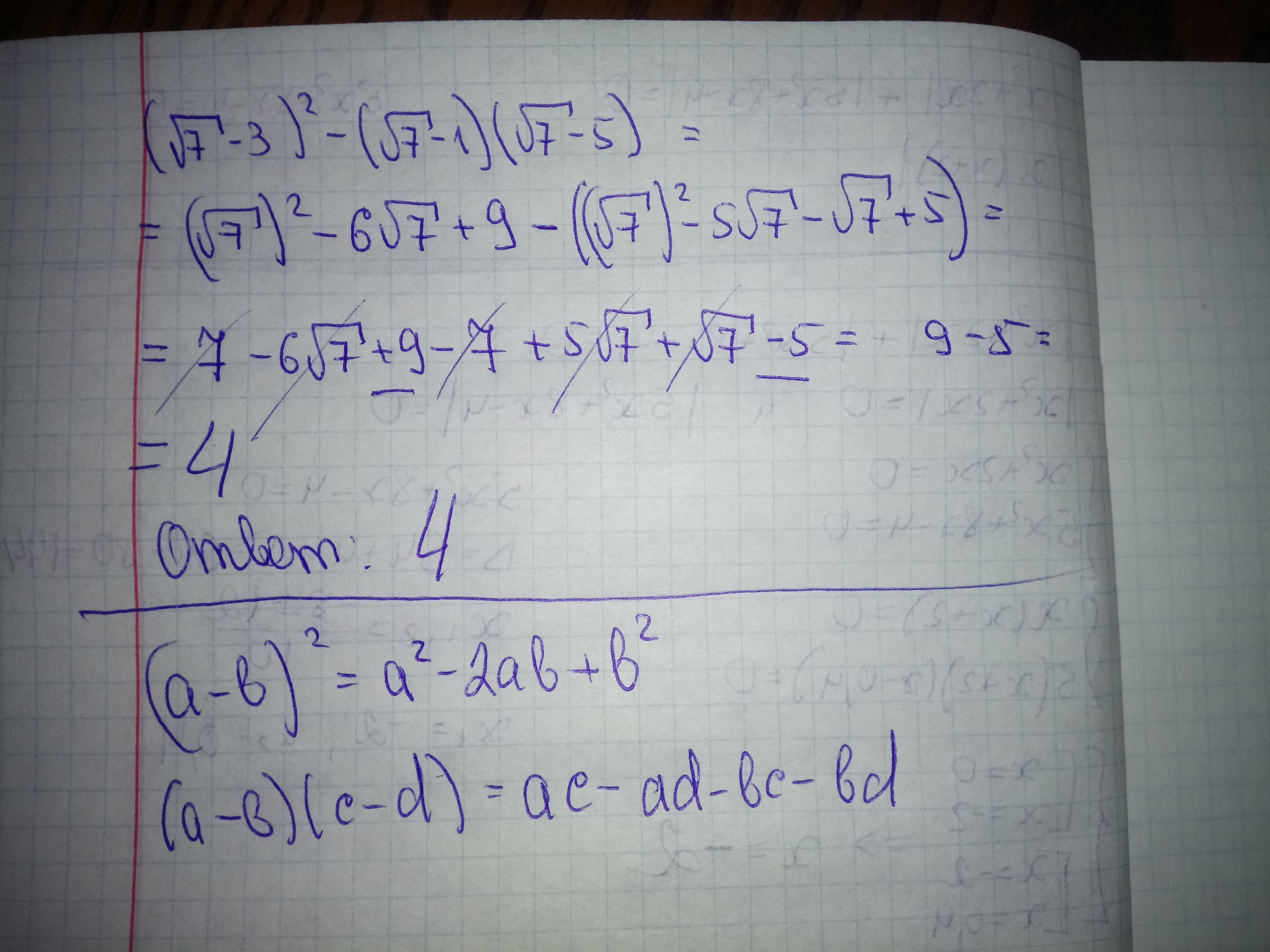 Первый квадрат 7-6с+9