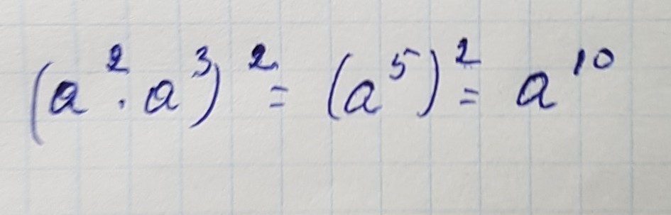 (a²*a³)²=(a²⁺³)²=(a⁵)²=a⁵*²=a¹⁰.
