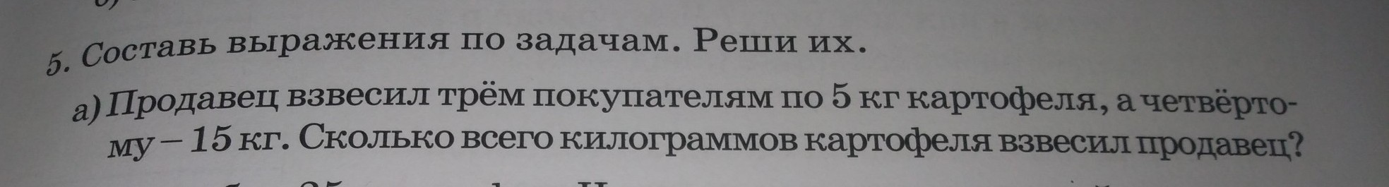 (5×3)+15=15+15=30 (кг)