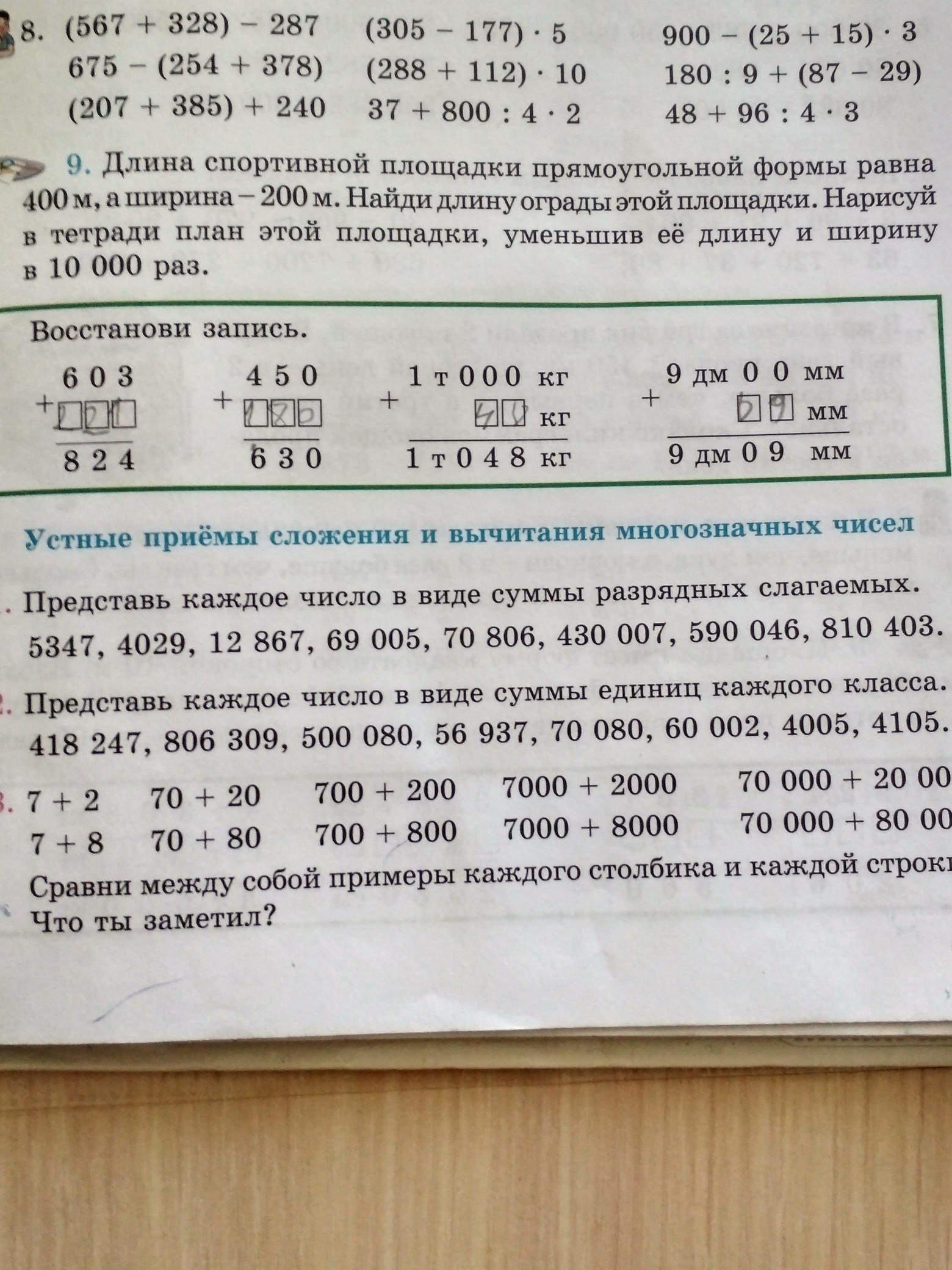 Длина ограды 1200 метров. Ширина 0.2м(2 см в тетради) Длина 0.4м (4 см в тетради) мы уменьшили в 10000 раз