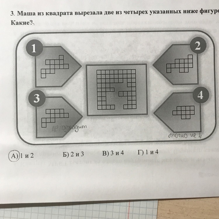 Маша из квадрата вырезала две из четырёх указанных ниже фигурок. Какие?