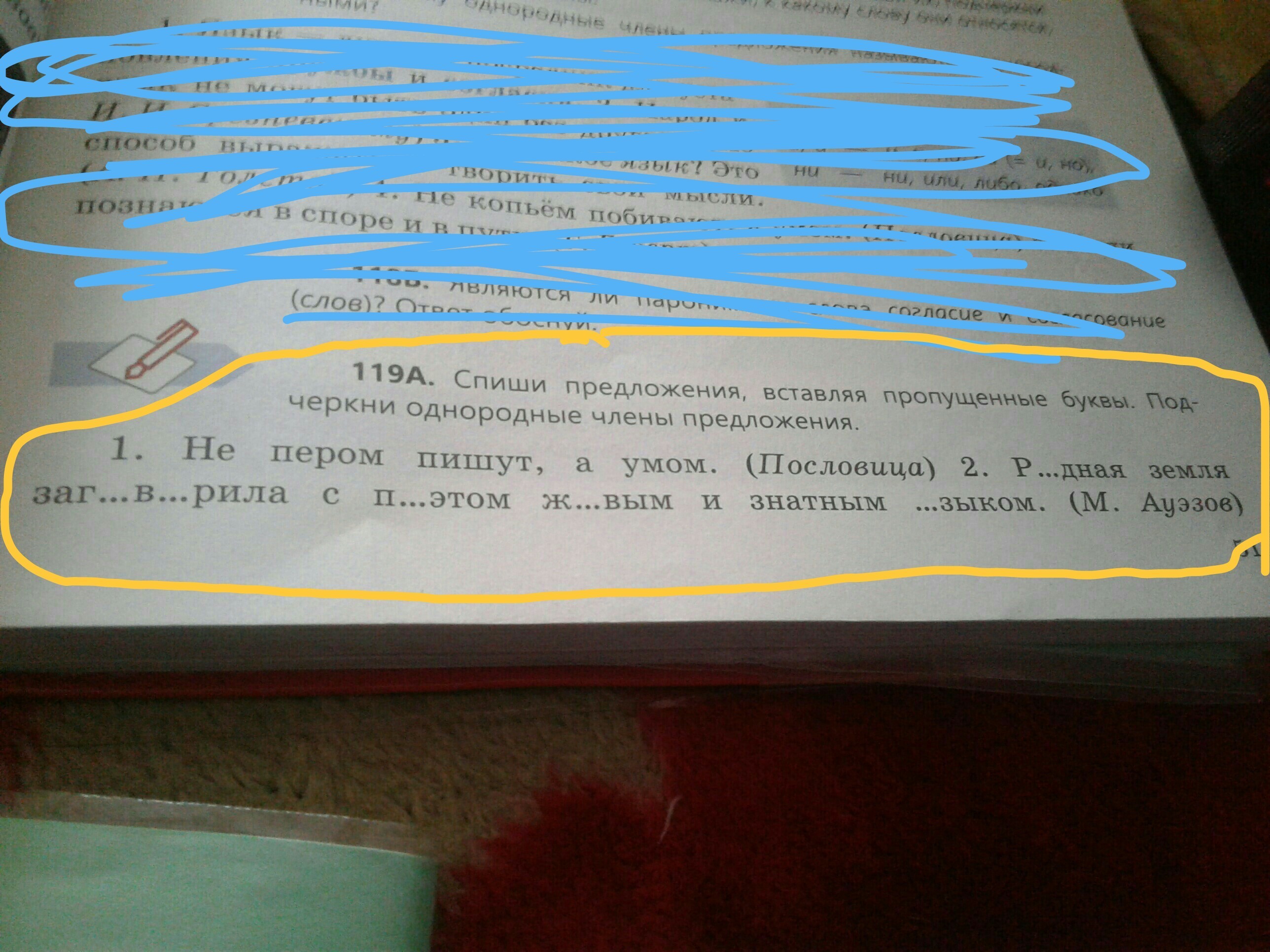 1. Не пером пишут, а умом. (однородные дополнения, подчеркните _ _ _ ).