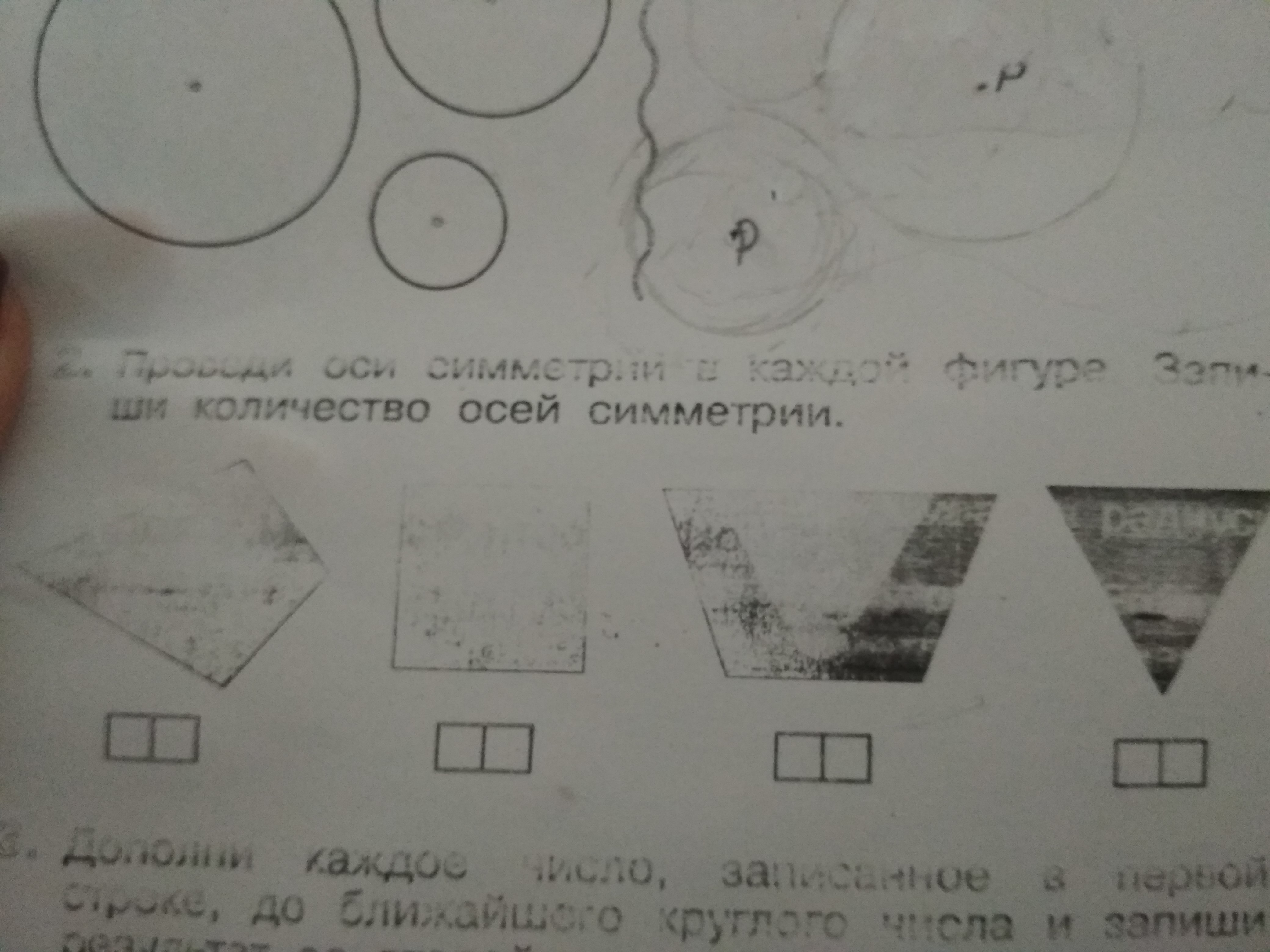 Помогите с математикой 3 класс .проведи оси симметрии в каждой фигуры Запиши количество осей симметрии