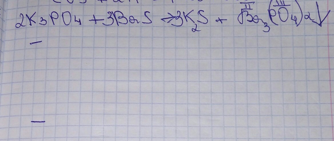 3BaS +2K3PO4 = Ba3(PO4)2 осадок + 3K2S