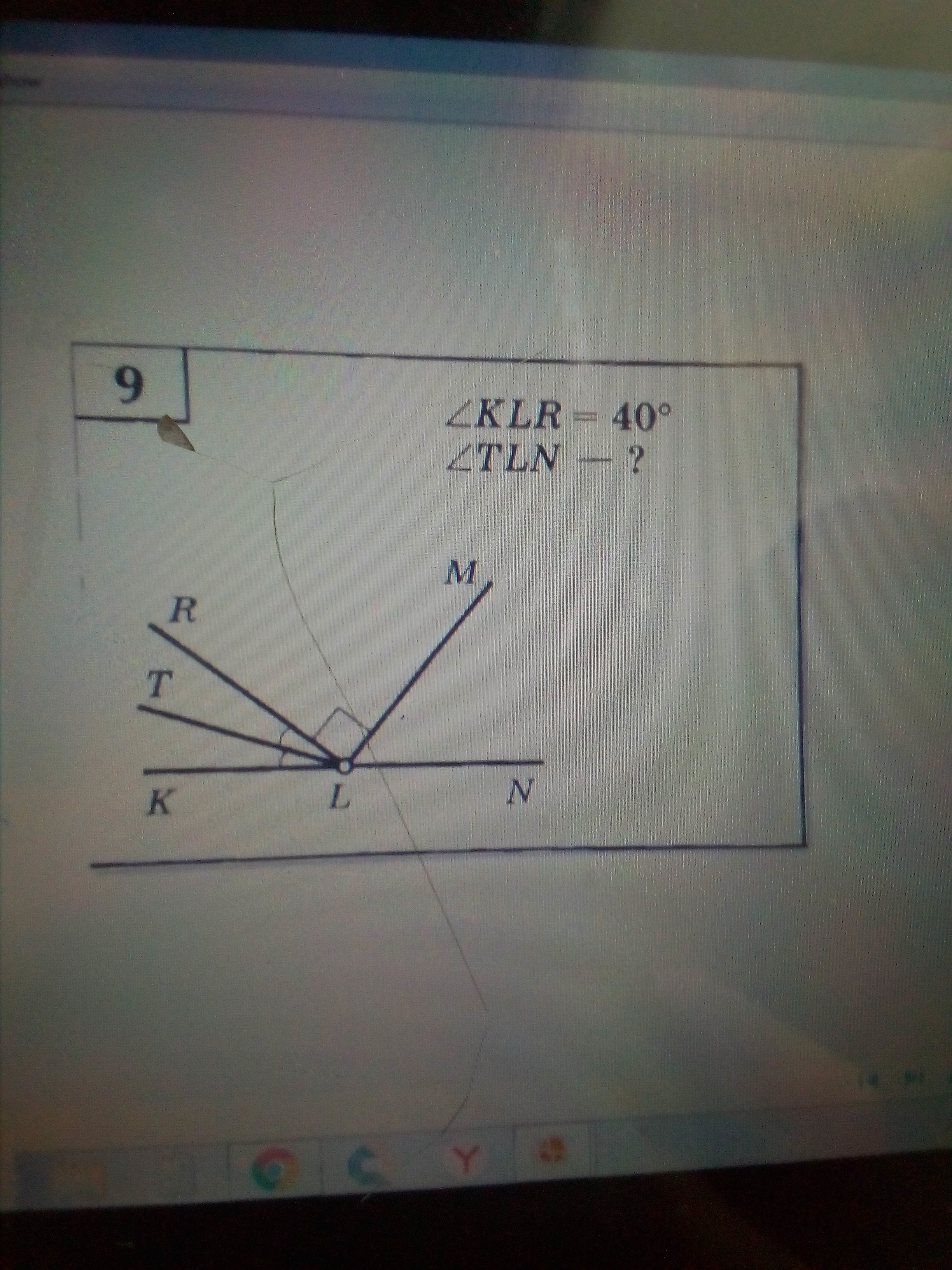 ∠KLN=∠KLT+∠TLN отсюда ∠TLN=KLN-∠KLT