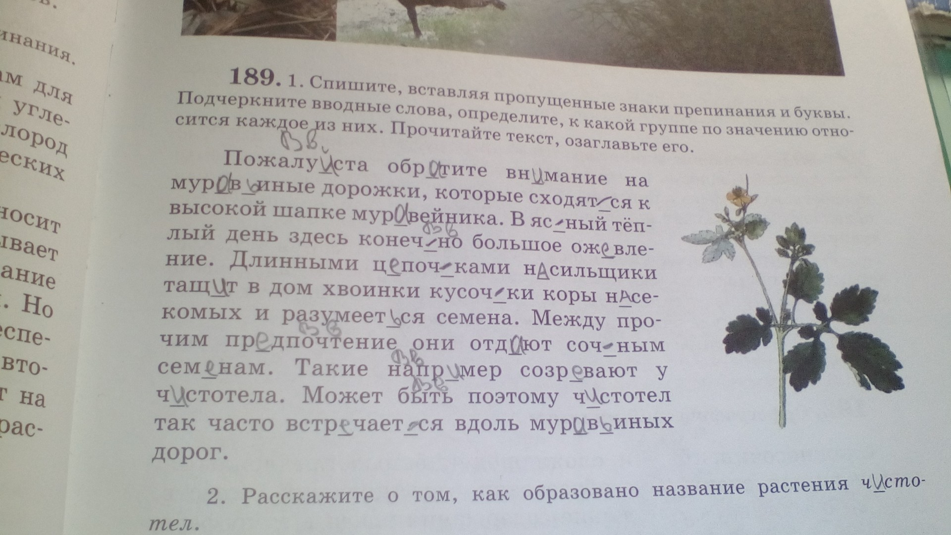 Пожалуйста обратите внимание на муравьиные дорожки, которые сходятся к высокой шапке муравейника. В ясный тёплый день здесь конечно большое оживление. Длинными цепочками носильщики тащут в дом хвоинки кусочки коры насекомых и разумеется семена. Между прочим предпочтение они отдают сочным семенам. Такие например созрезавают у чистотела так часто встречается вдоль муравьиных дорог.