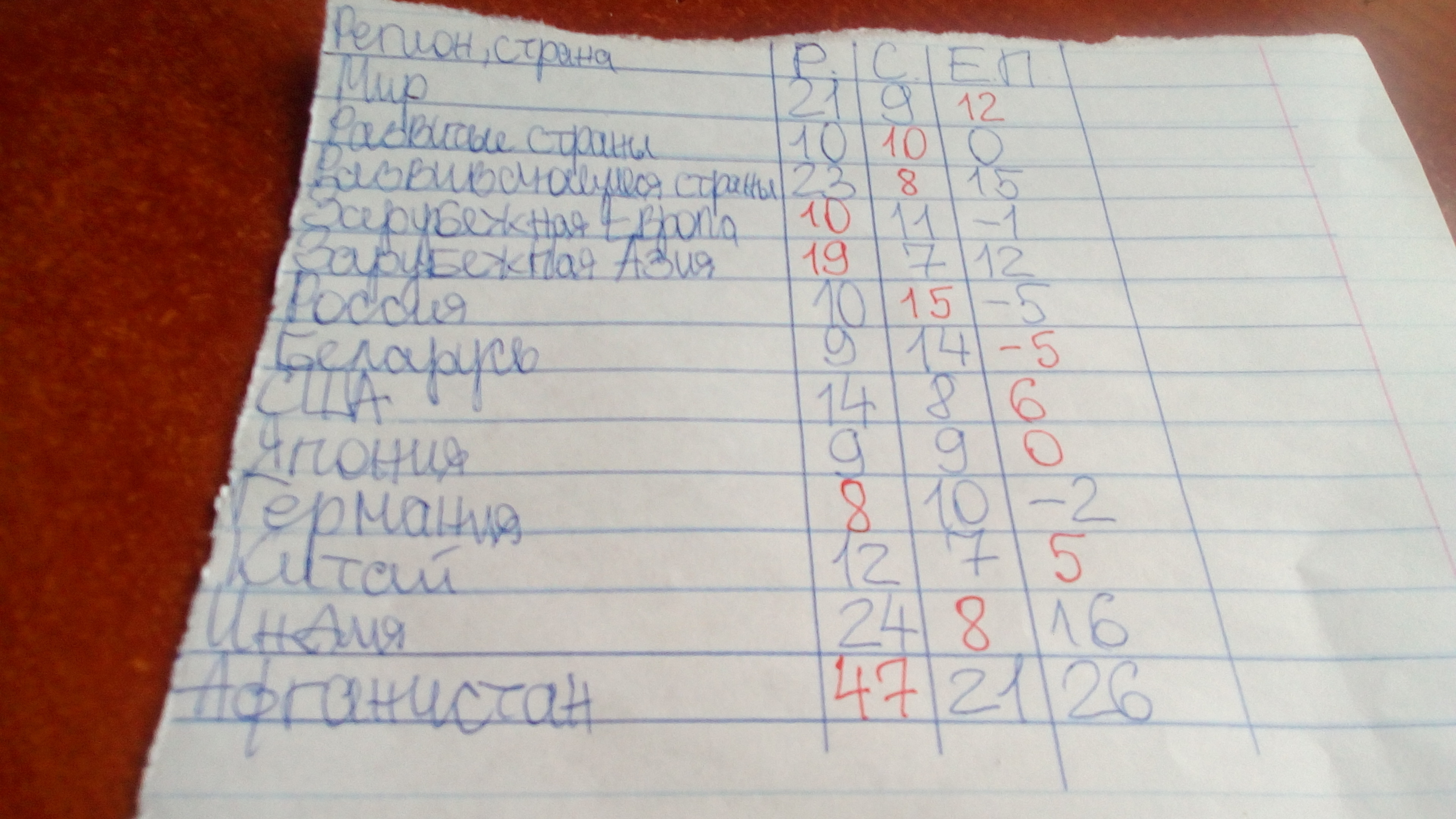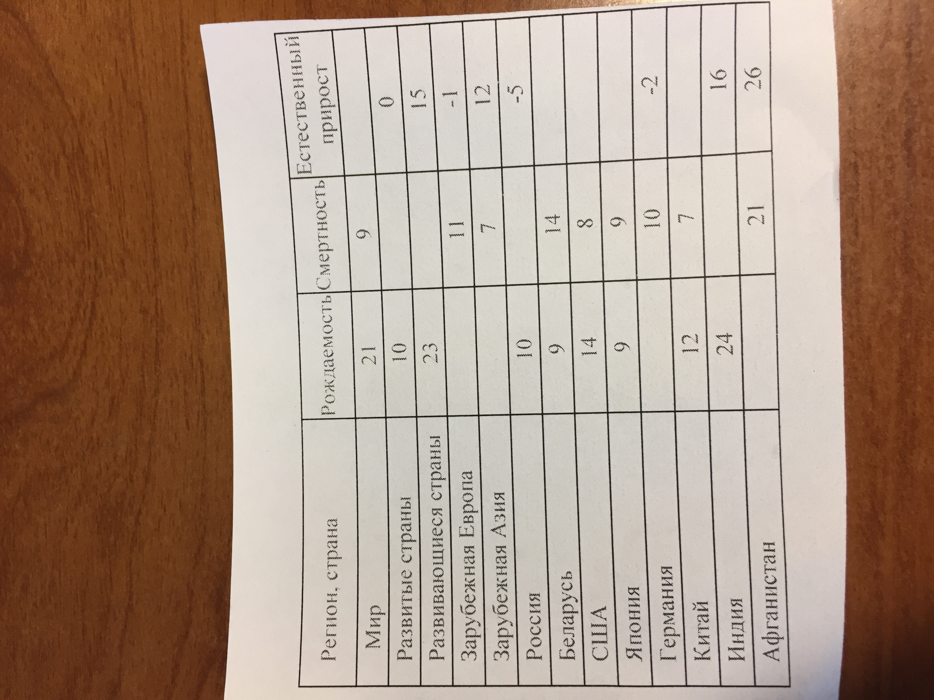 Там всё просто вычисли по формуле ЕП (Ест.прирост)=Р(Рождаемость)-С (Смертность)Если ответ со знаком - то пиши вмести с ним.И так можно менять значения формулы и находить р с или еп..