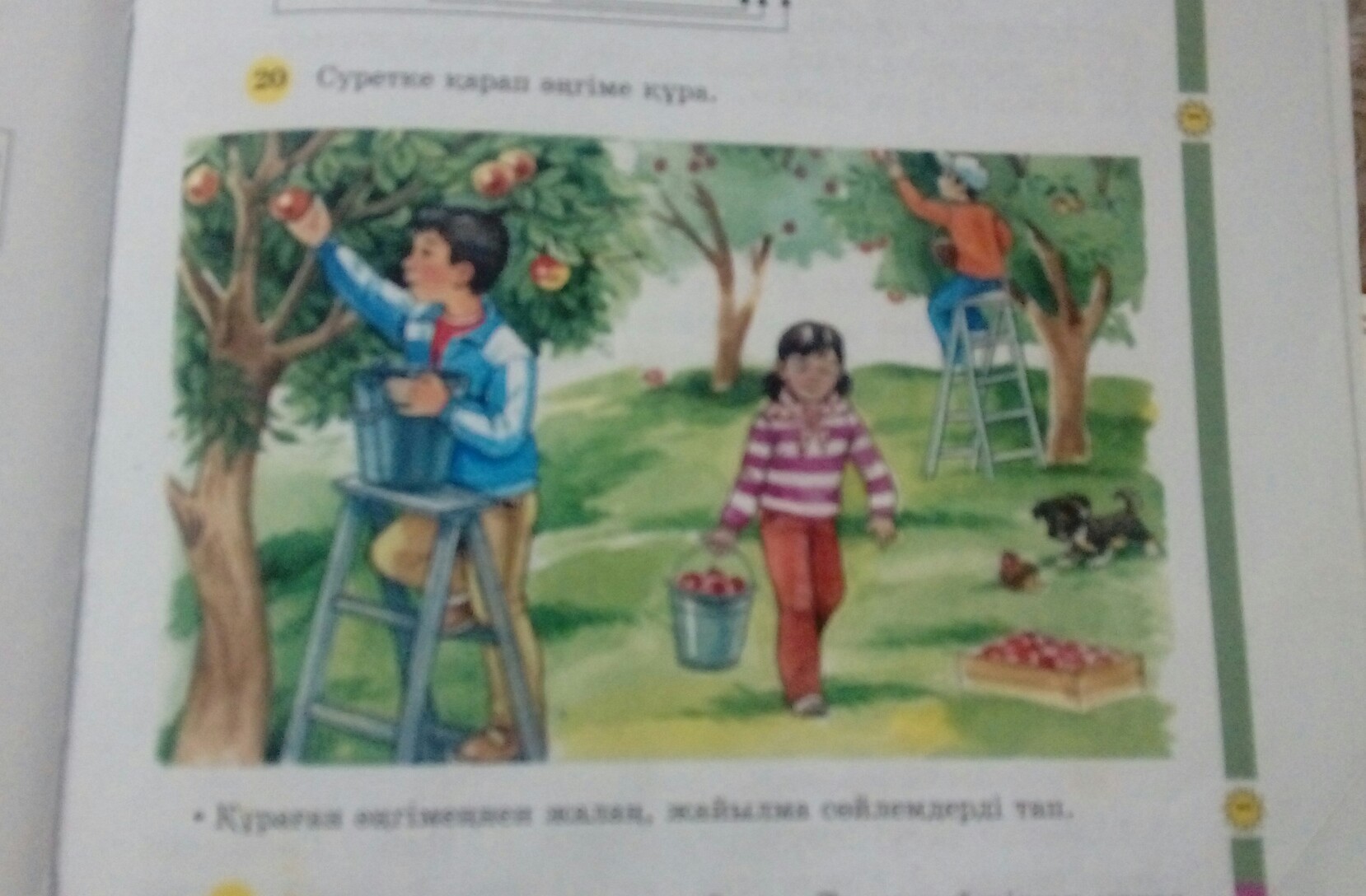 Жаз мезгілі. Бір бірінен ажырамайтын, кішкентай кезінен дос болып келген үш дос осындай ыстық күнде бір әжеге, бағындағы алмаларды теруге көмектеседі. Олар ұйымшылдық танытып, алмаларды себетке толтырып жинап береді. Сол сәтте әже үш достардың ұйымшыл, көмекшіл, еңбекшіл екенін байқап, оларға да алма салып береді.