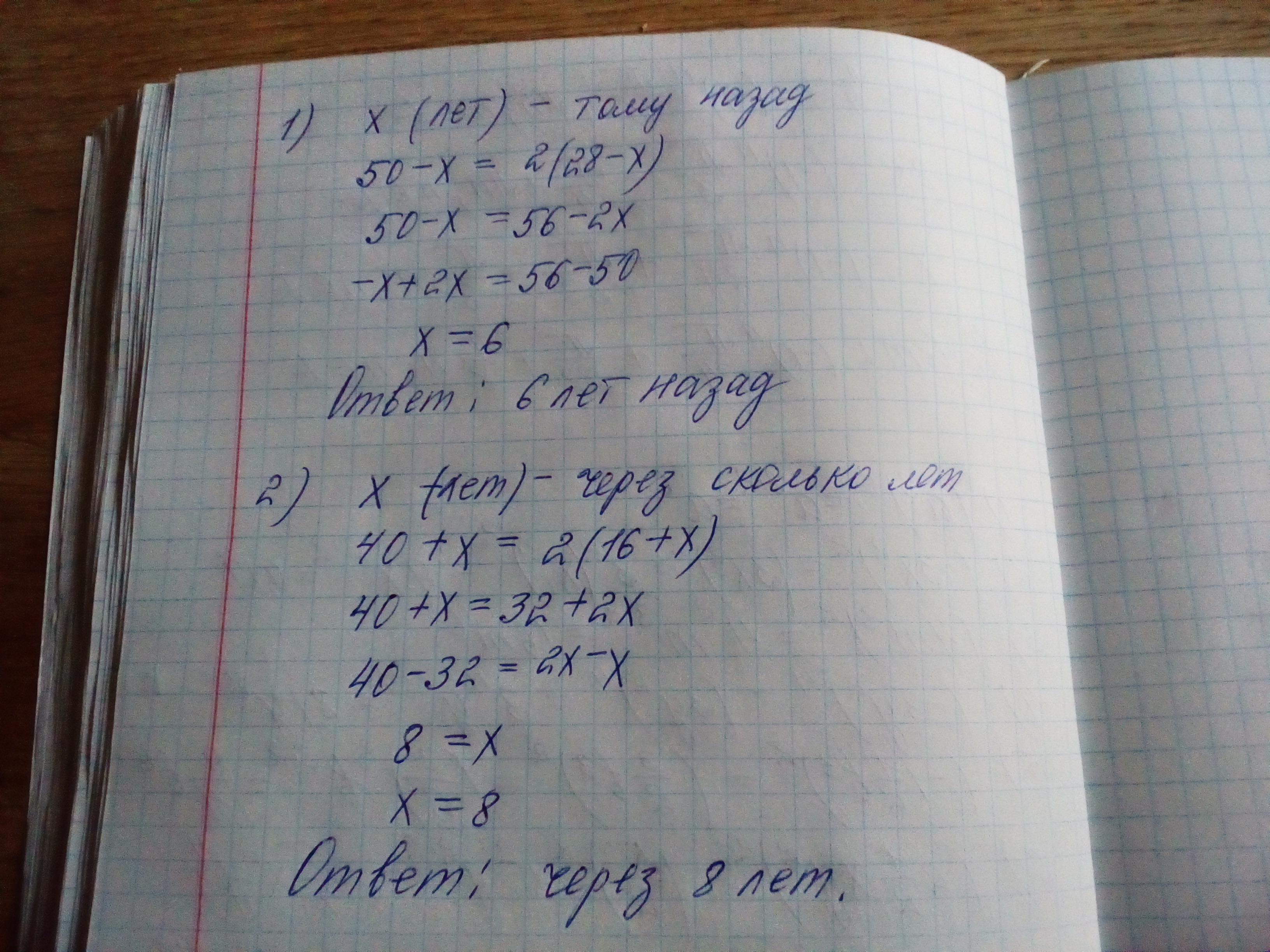 2) Отцу 40 лет, сыну 16. Через сколько лет отец будет в 2 раза старше сына ?