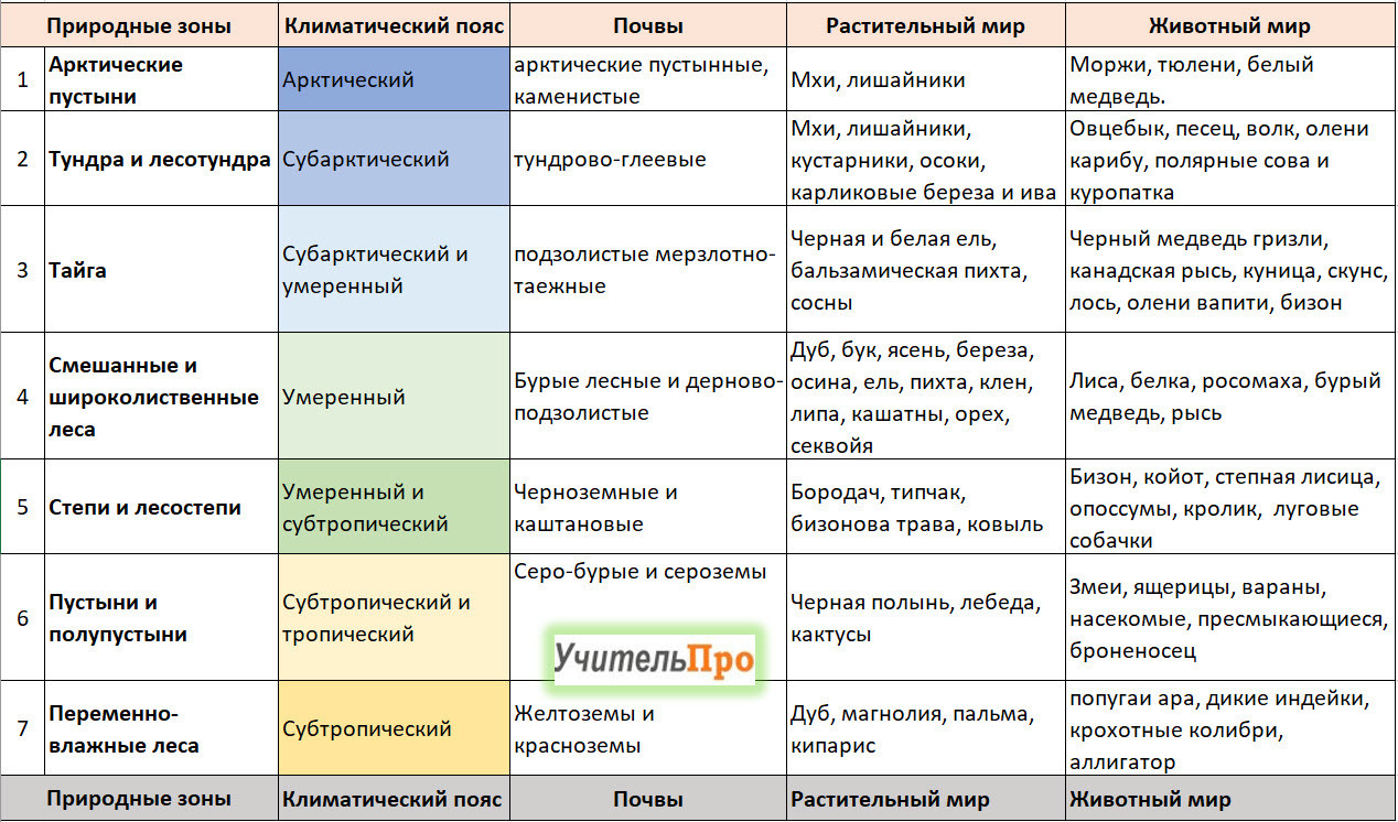 Если тут чего то нет (именно названия природных зон - то допишите. Срочно!)